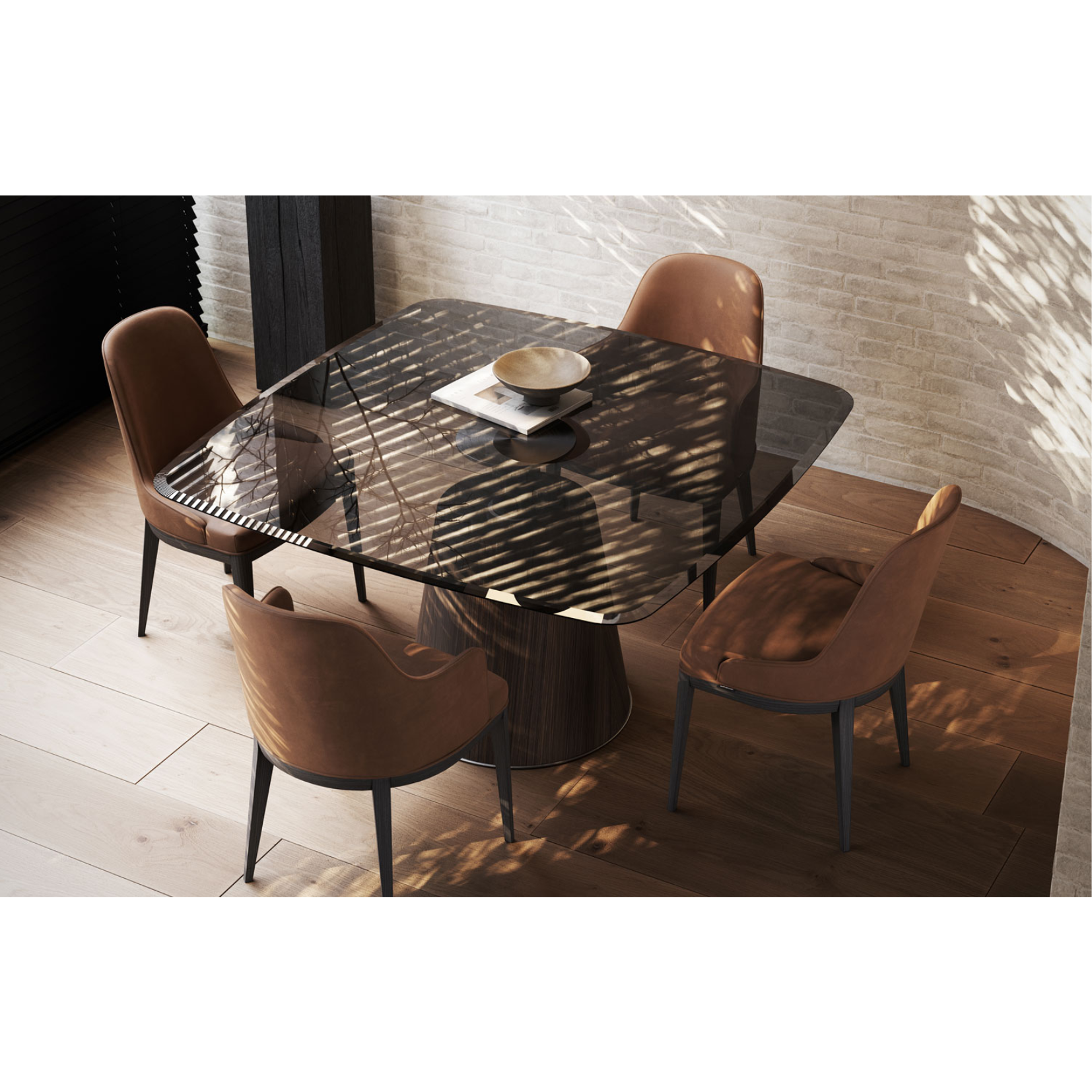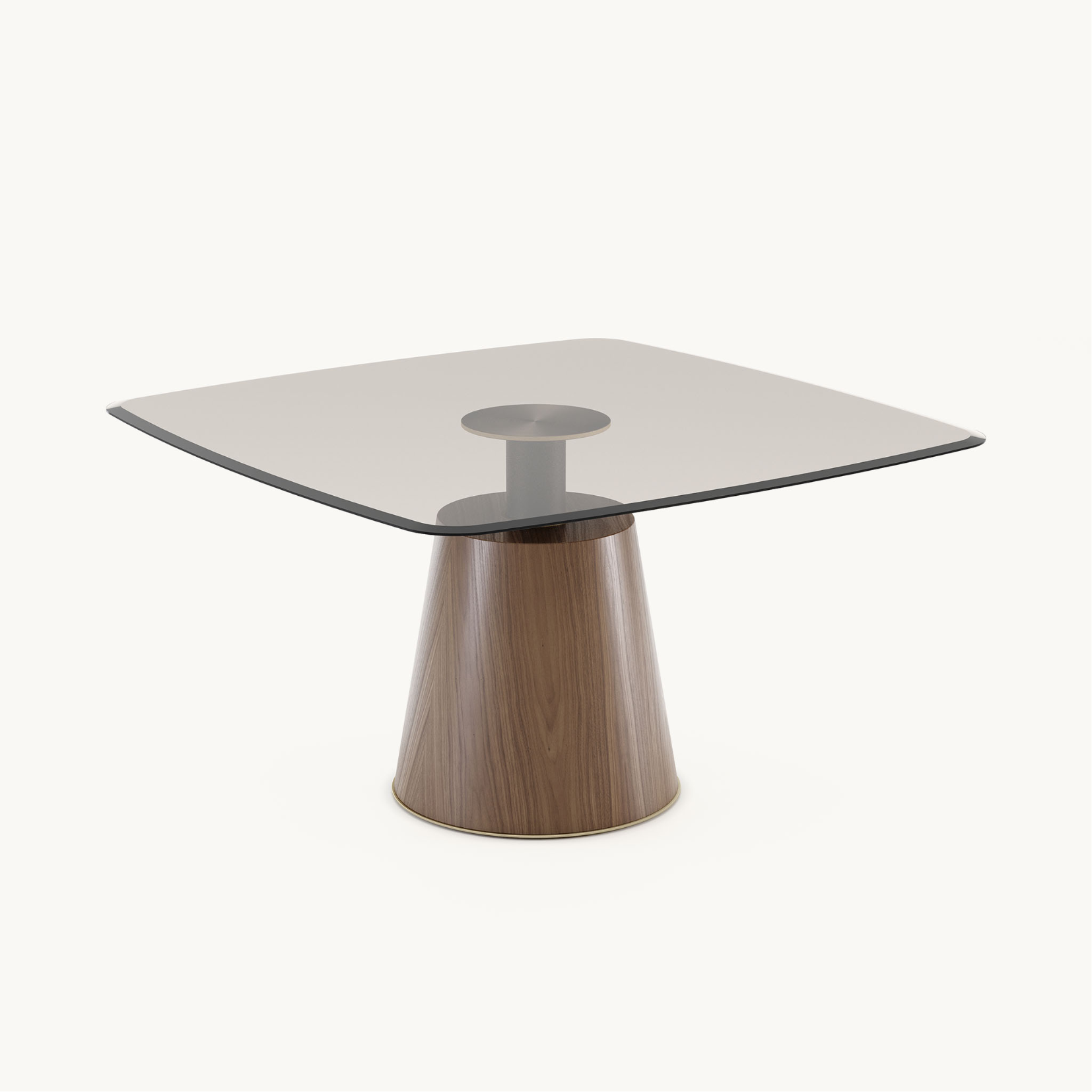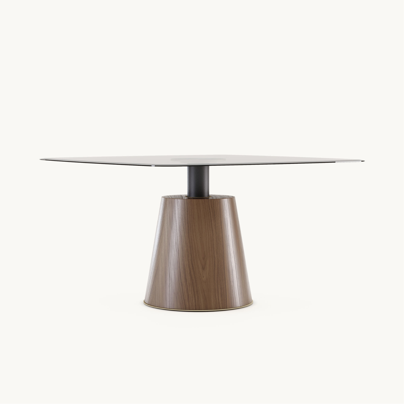 With a curved design and generous shapes, Panton is a dining table that can be included in residential and commercial venues. A round glass top is connected to a wood conical base, fulfilling your space with the right amount of elegance and sophistication. For a gracious atmosphere, stainless steel details are included to take your designs to another level.