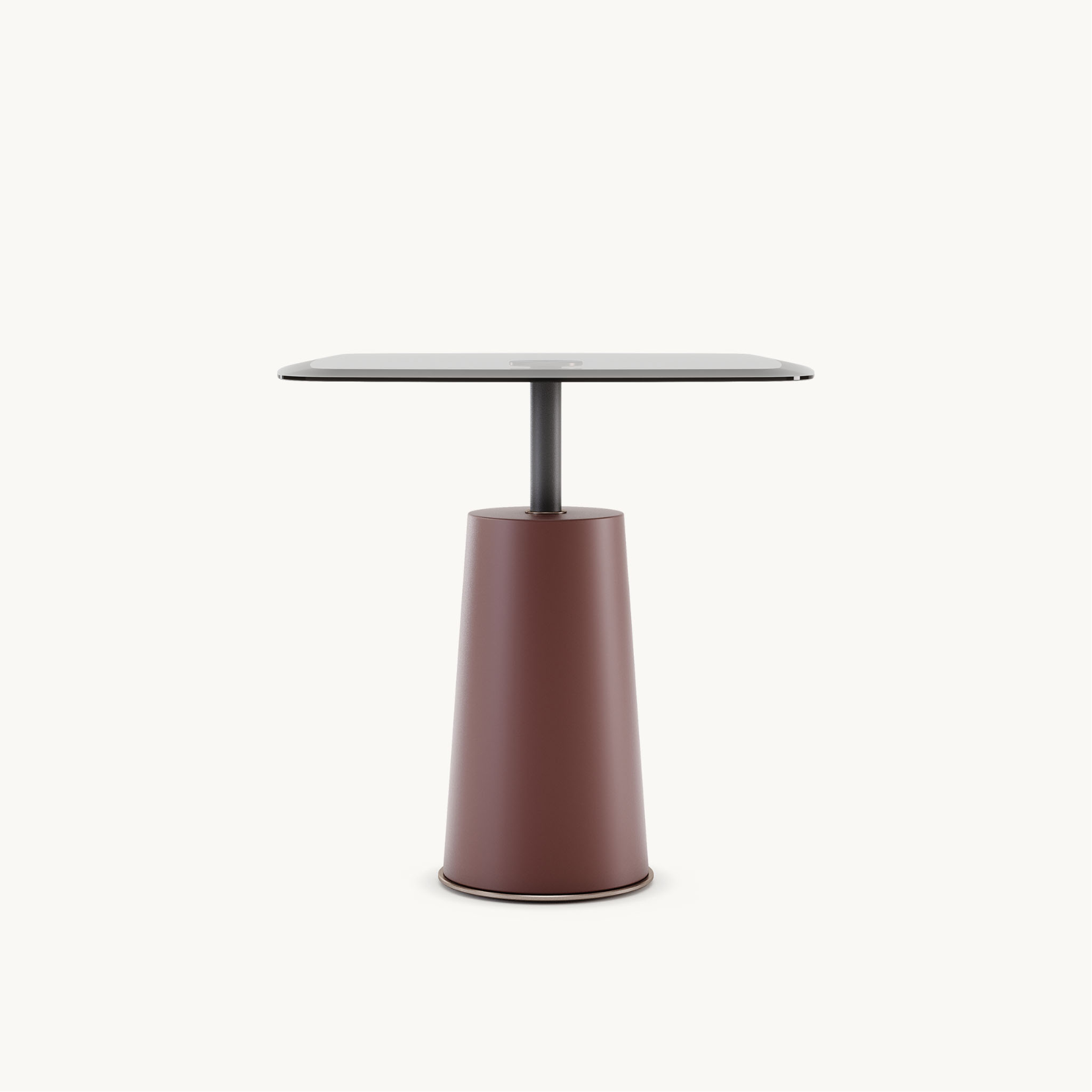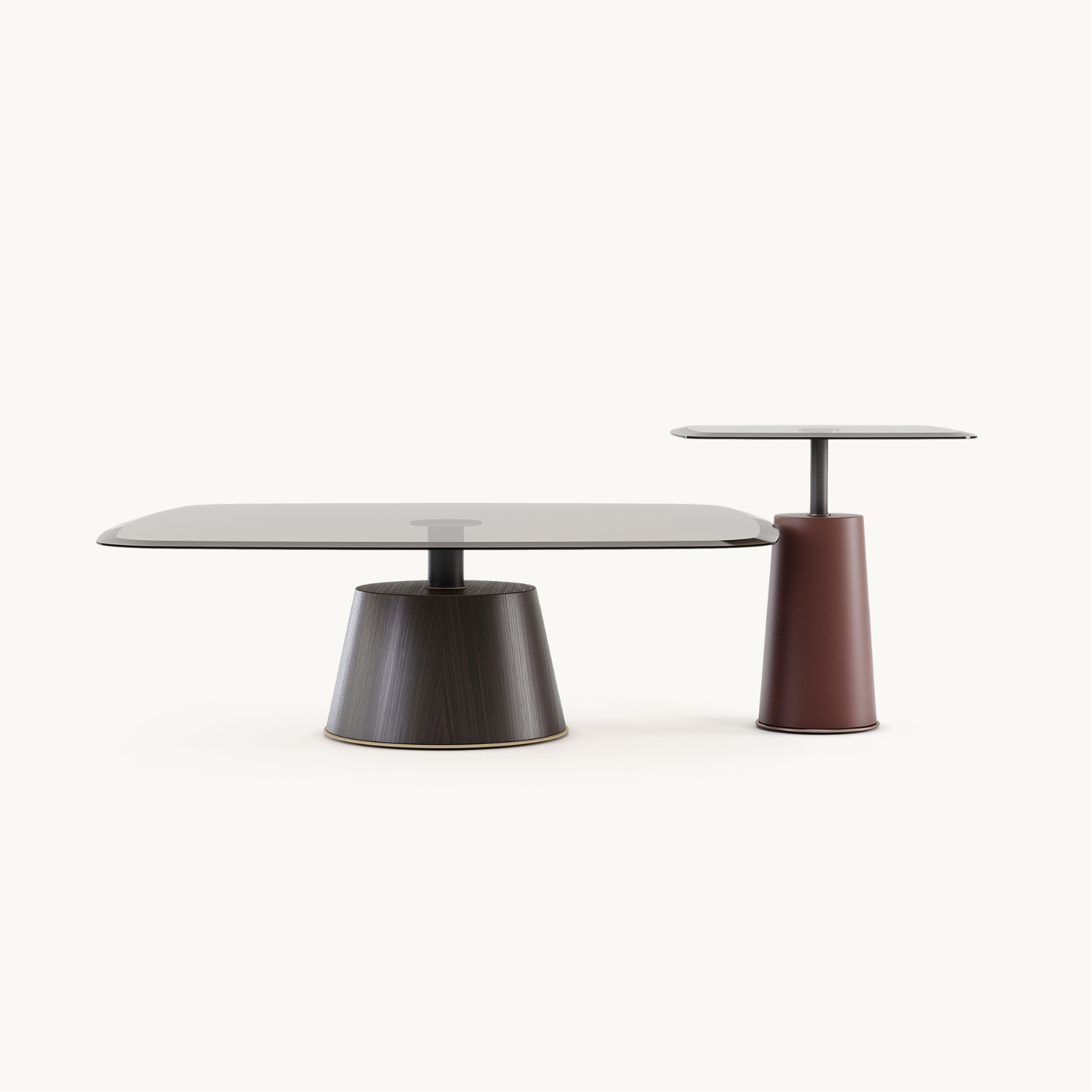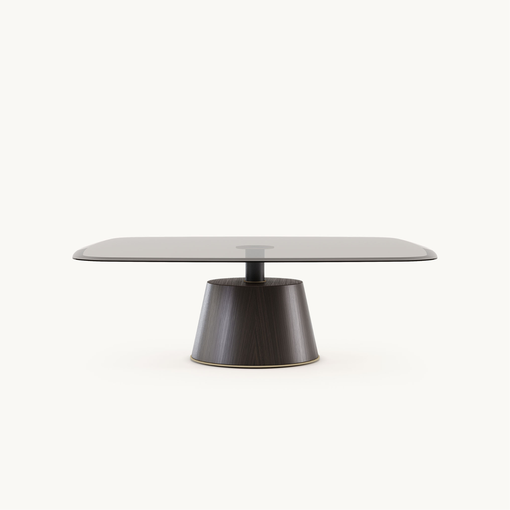 With a curved design and generous shapes, Panton is a dining table that can be included in residential and commercial venues. A round glass top is connected to a wood conical base, fulfilling your space with the right amount of elegance and sophistication. For a gracious atmosphere, stainless steel details are included to take your designs to another level.