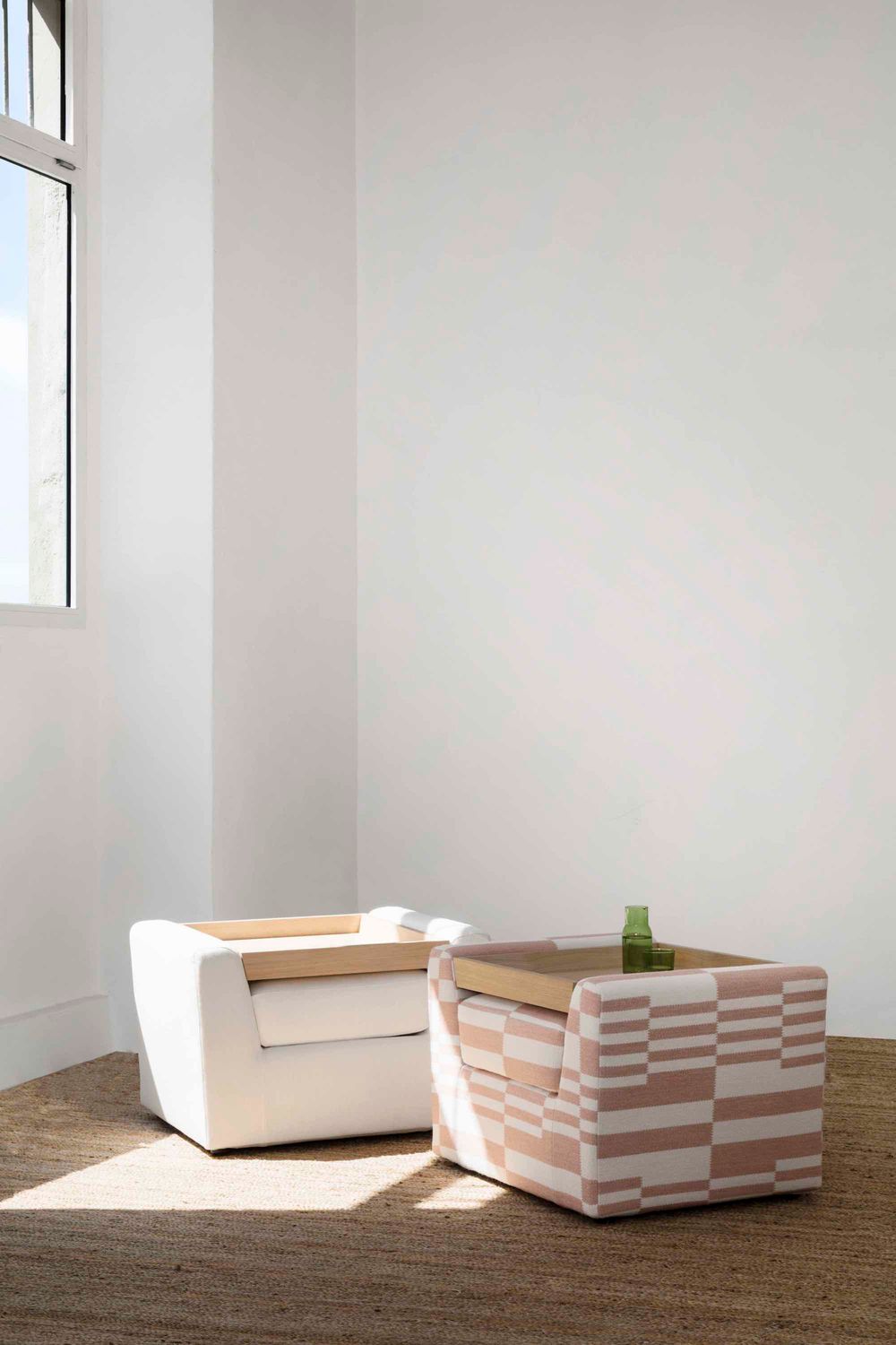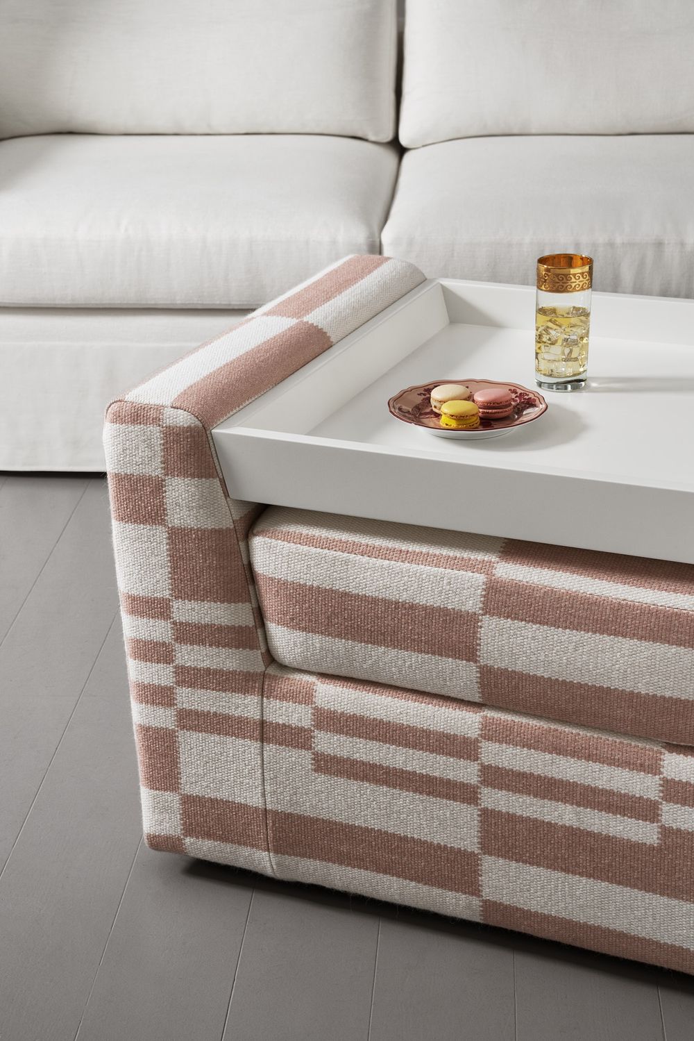 It is not an armchair, but it is as comfortable as an armchair. Paolino pouf well interprets the combination of genius and intemperance. Very soft in the lines of its upper part, it lets some corners emerge in the base. The shapes coexist: round, oblique, or more squared, diverse but in harmony. It is born from summer and island inspirations.