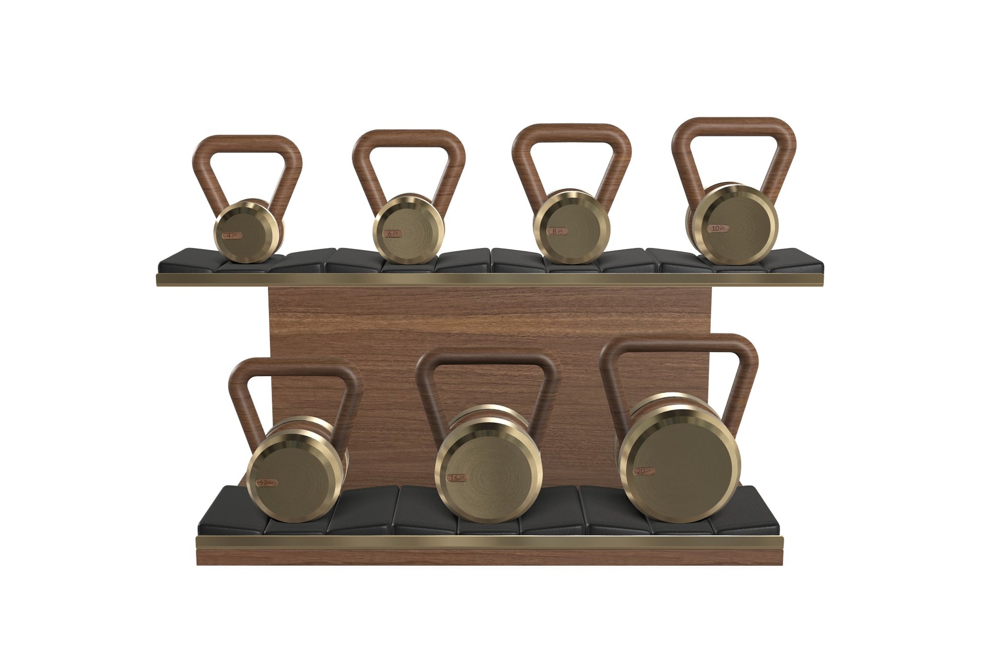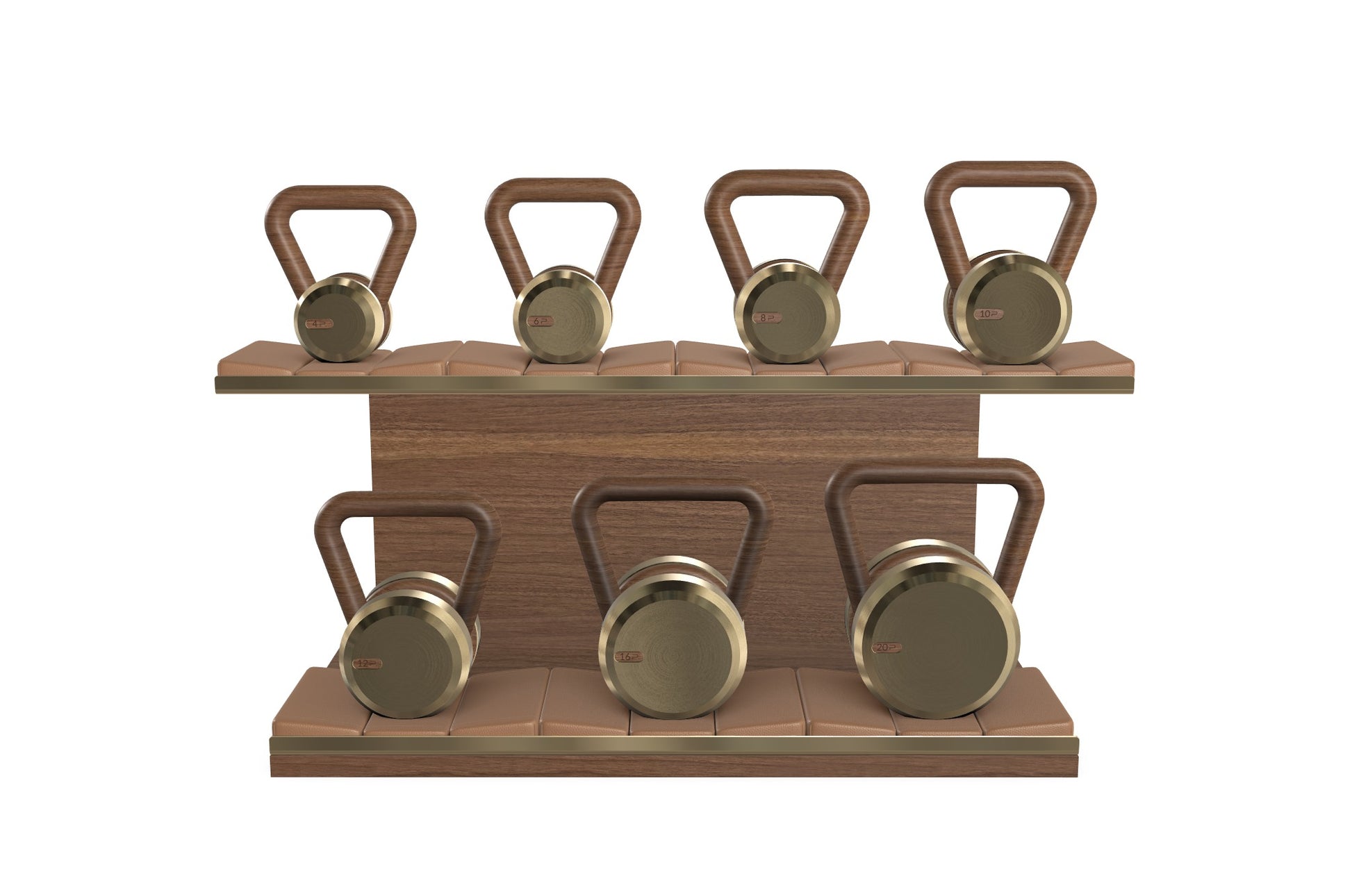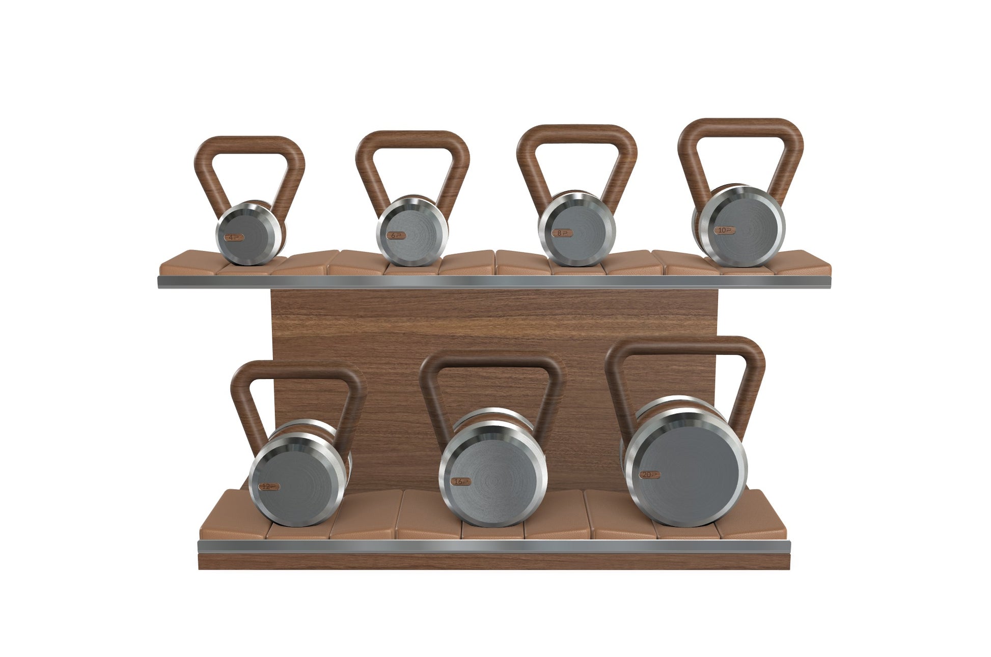 The sturdy and straightforward stand, combined with the unconventional design of the kettlebells, creates something truly distinctive that is certain to enhance the prestige of any setting. Each element is meticulously crafted with meticulous attention to detail. The LOVA™ set is available in various configurations, with kettlebells offered in both horizontal and vertical sets, as well as individual pieces, with or without a wooden stand.