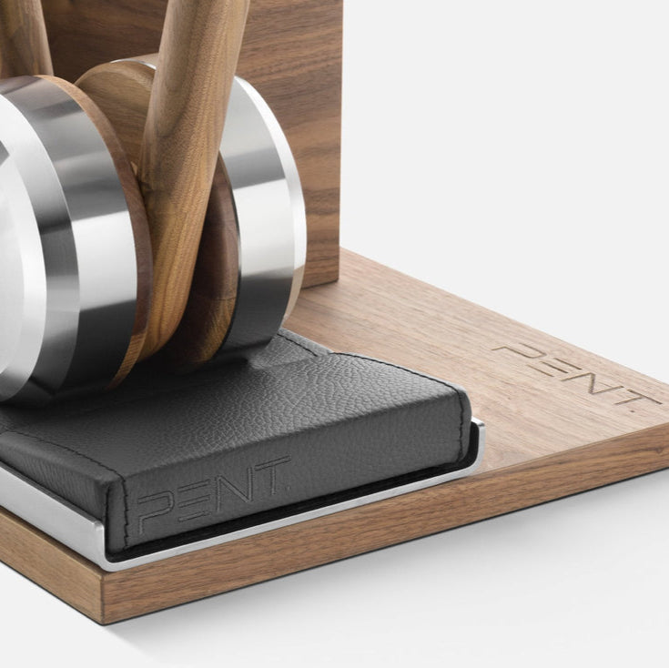 This is a handcrafted set made from natural American walnut wood and stainless steel. Just like other PENT. products, it represents the culmination of numerous hours of design work and craftsmanship, resulting in a unique blend of form and practicality.