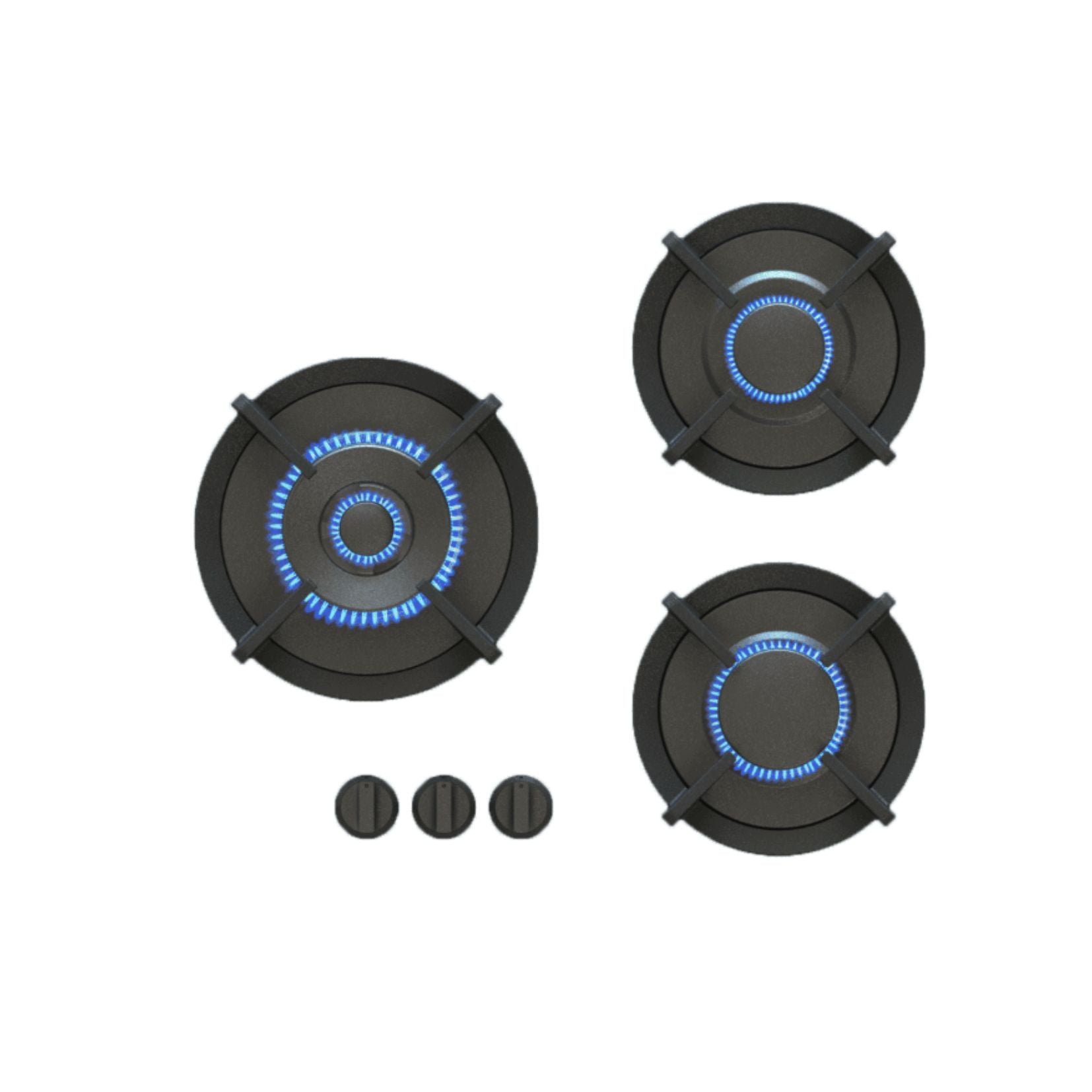 24 Inch Gas Cooktop with 3 Brass Burners, Automatic Spark Ignition, Double-Enamel Cast Iron Pan Supports, Controlled Power, Durable, Easy-to-Clean, Safety Shut-Off Control, Installs into Any Countertop, and Handmade in Holland