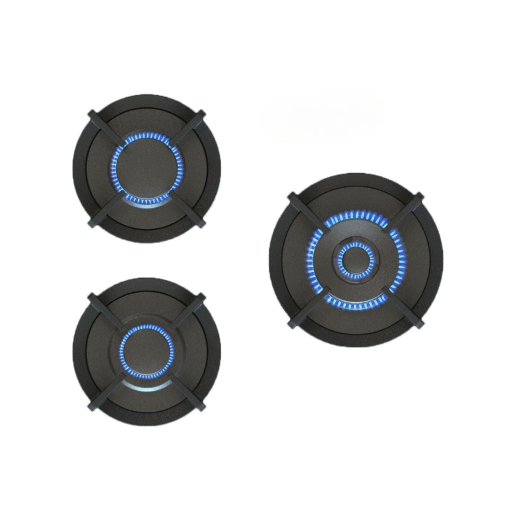 24 Inch Gas Cooktop with 3 Brass Burners, Automatic Spark Ignition, Double-Enamel Cast Iron Pan Supports, Controlled Power, Easy-to-Clean Parts, and Safety Shut-Off Control