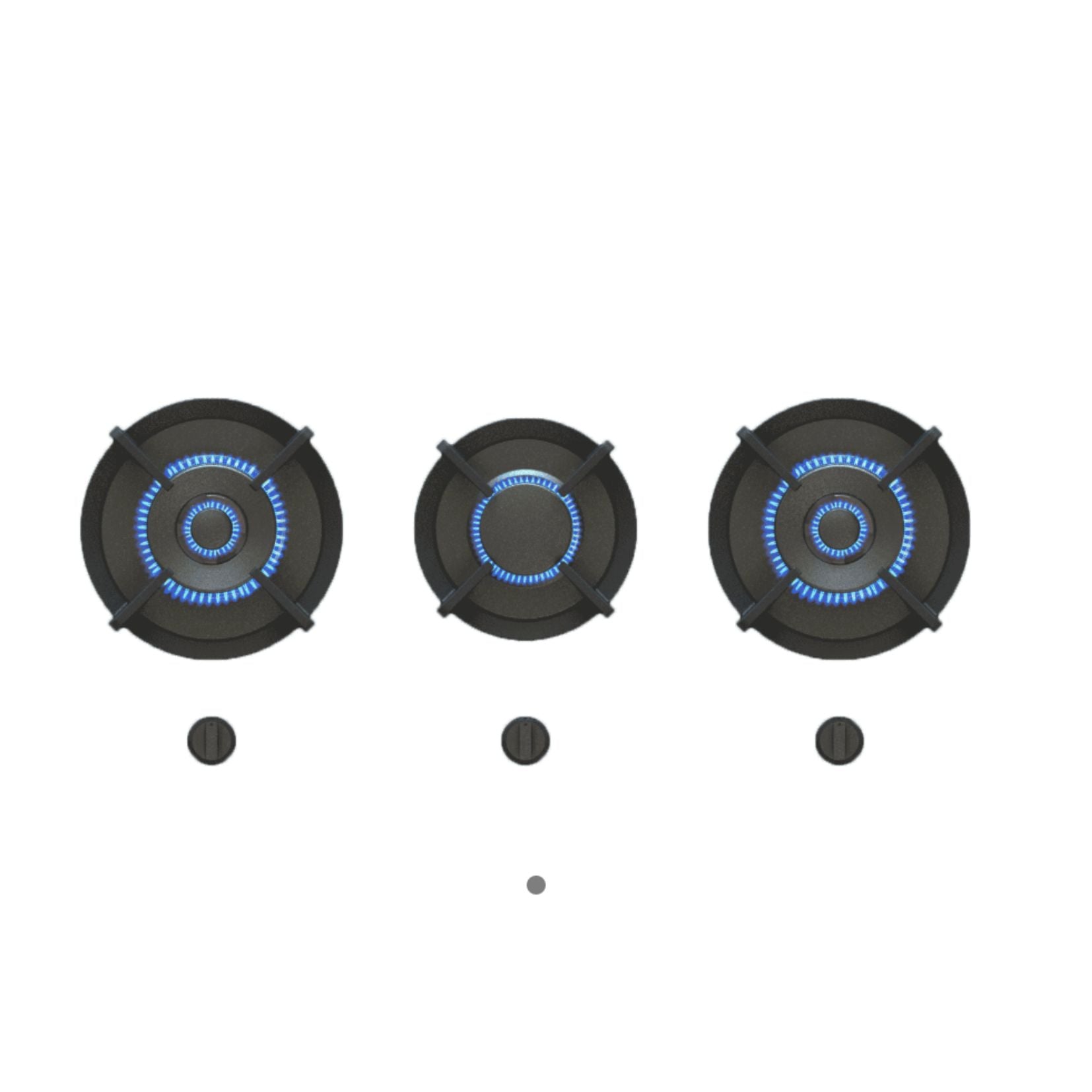 36 Inch Gas Cooktop with 3 Brass Burners, Automatic Spark Ignition, Double-Enamel Cast Iron Pan Supports, Controlled Power, Durable, Easy-to-Clean, Safety Shut-Off Control, Installs into Any Countertop, and Handmade in Holland