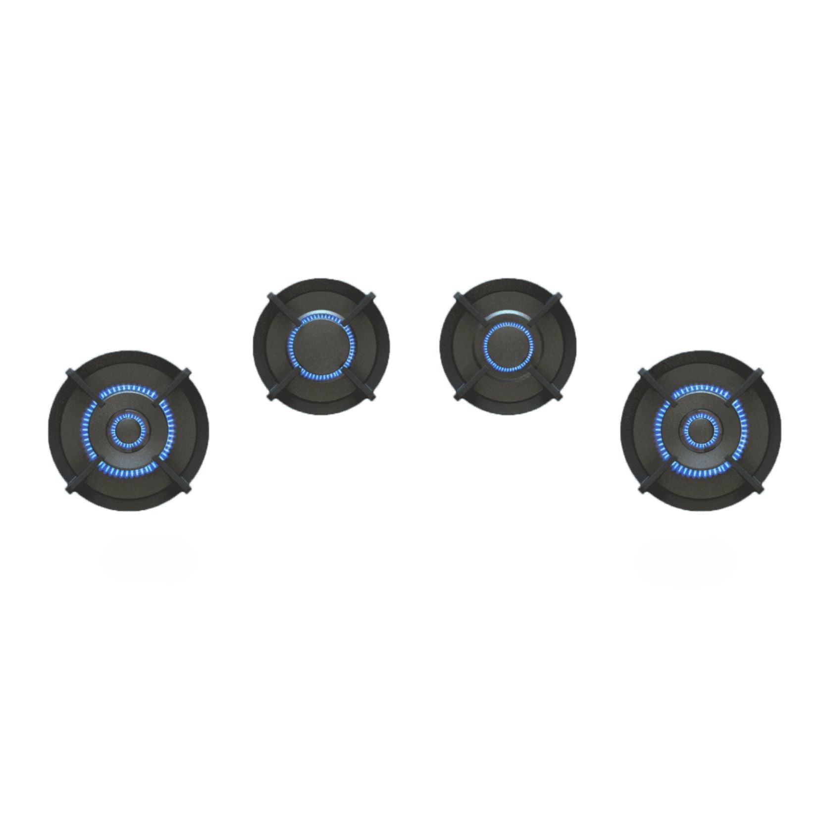 48 Inch Gas Cooktop with 4 Brass Burners, Automatic Spark Ignition, Double-Enamel Cast Iron Pan Supports, Controlled Power, Easy-to-Clean Parts, and Safety Shut-Off Control
