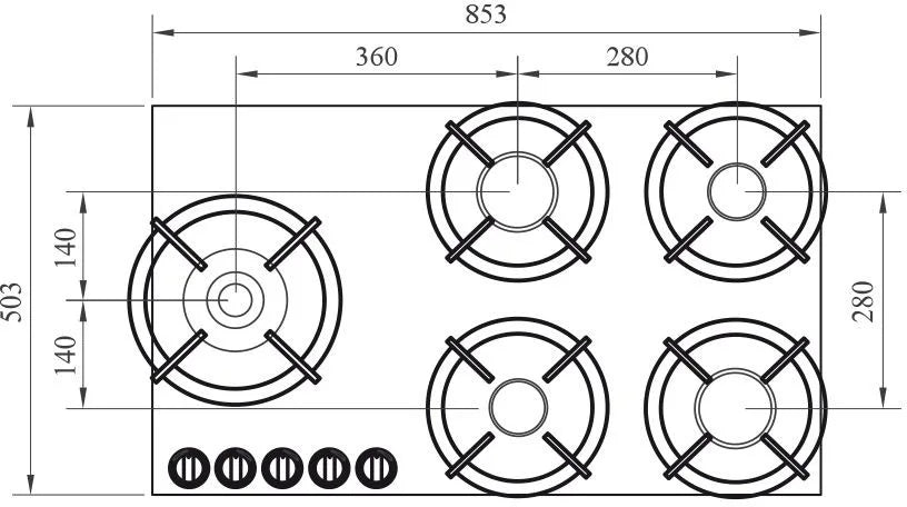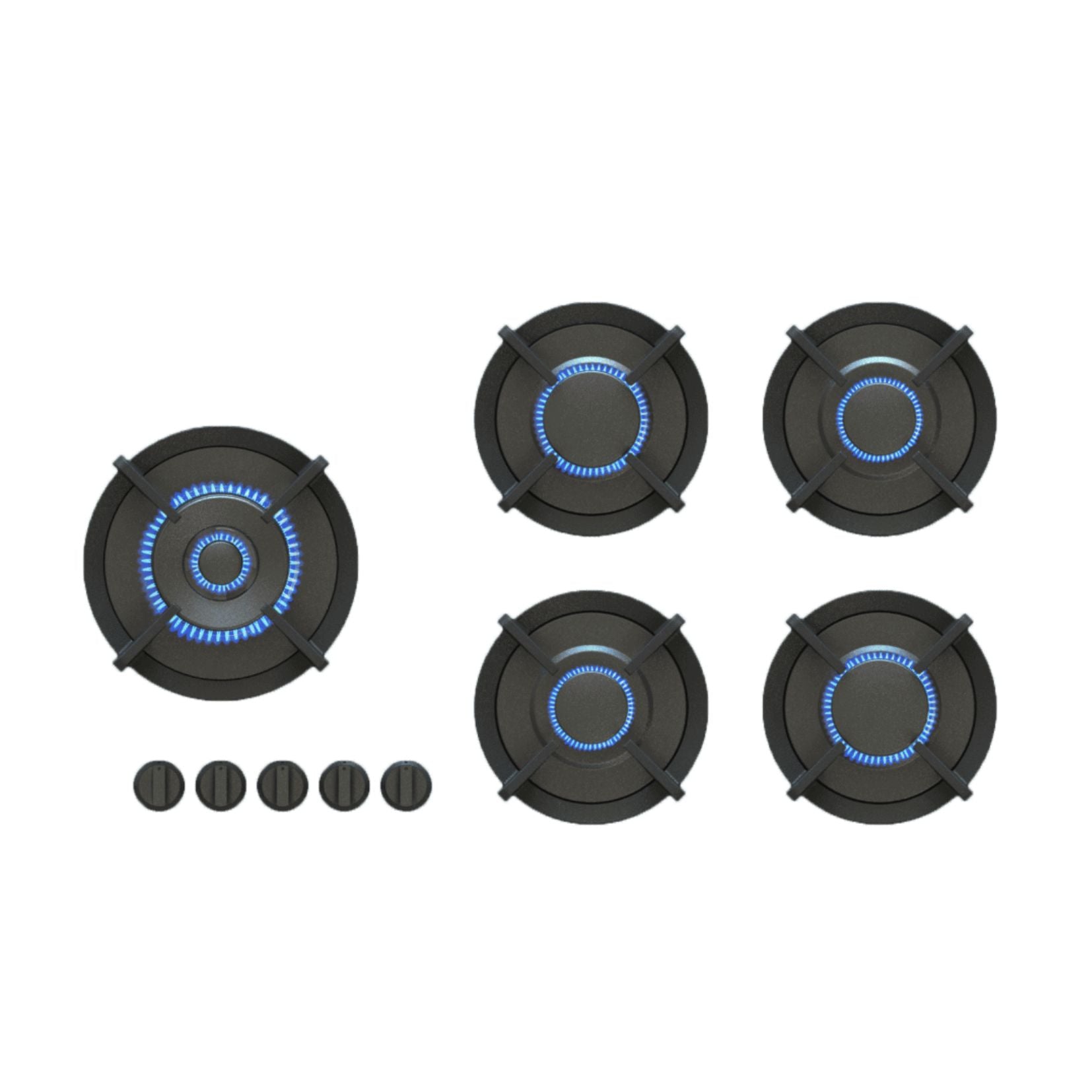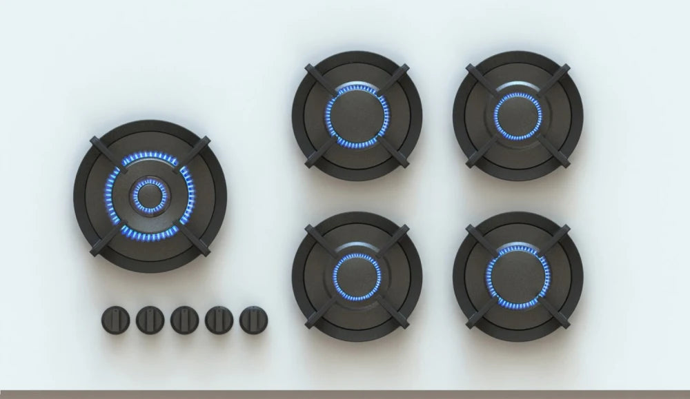 36 Inch Gas Cooktop with 5 Brass Burners, Automatic Spark Ignition, Double-Enamel Cast Iron Pan Supports, Controlled Power, Durable, Easy-to-Clean, Safety Shut-Off Control, Installs into Any Countertop, and Handmade in Holland