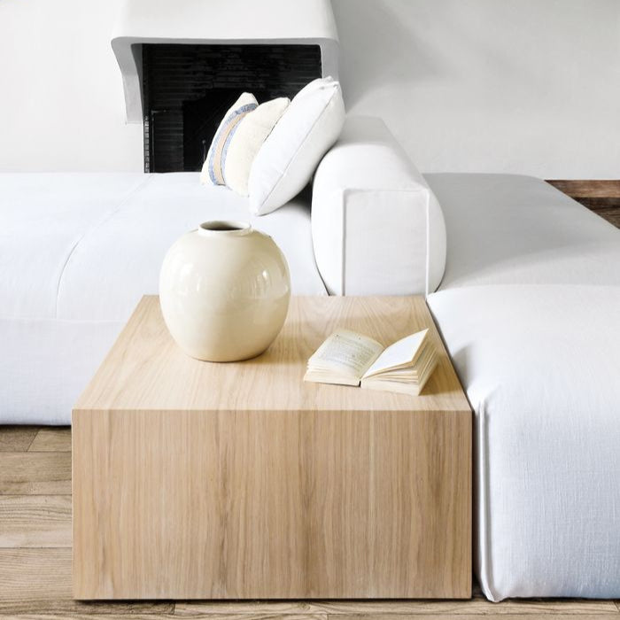 As a domestic island of relaxation, the Portofino small tables are perfectly welcomed by the upholstered modules of the Portofino sofa. A real integrated support surface, the Portofino small tables ensure multitasking solutions, forms and functions in different kind of environments. Riviera natural oak structure.