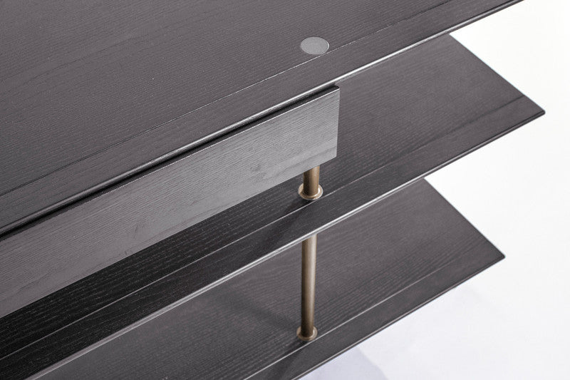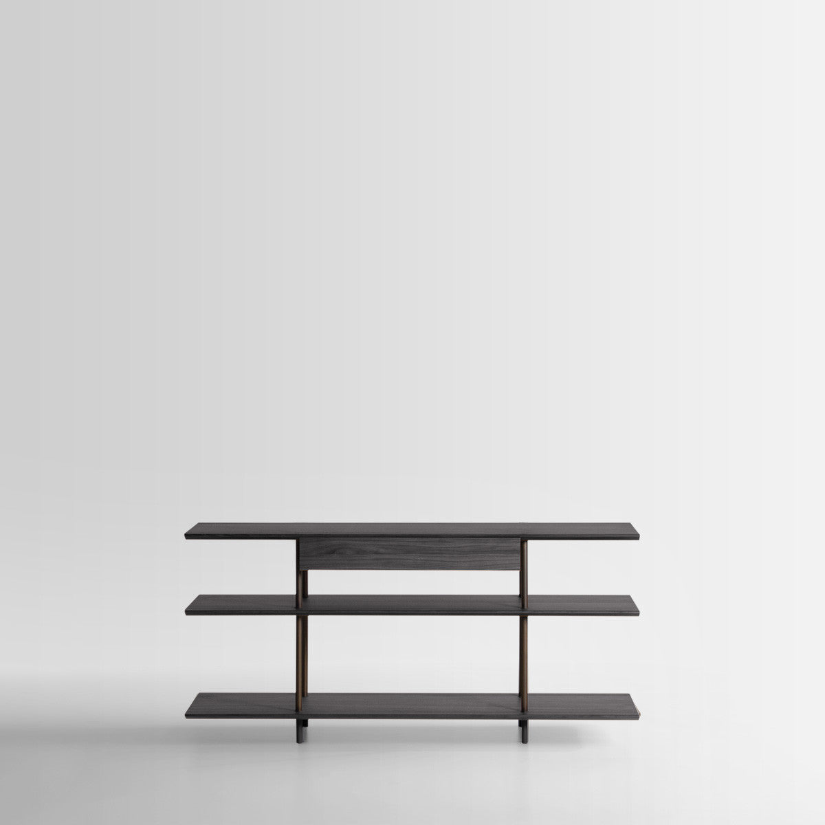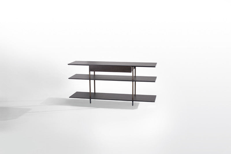Arial is a collection of freestanding bookshelves and console that chooses wood as a material of excellence combined with more tech materials.