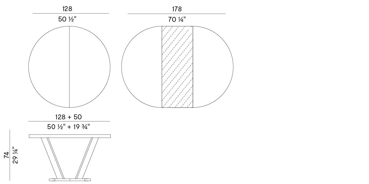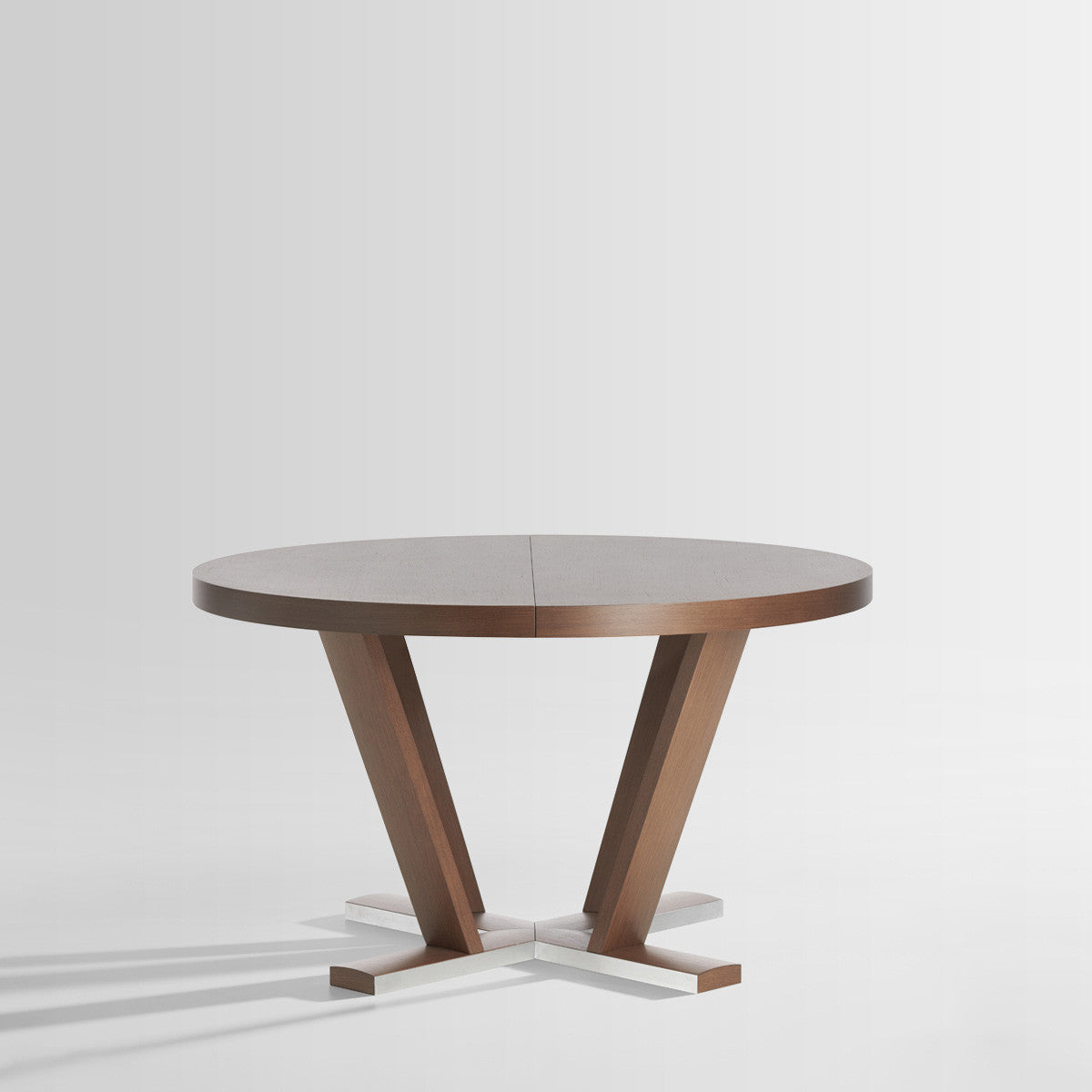 The Aura extendable table develops from a cross shape oak base, which is its distinctive element, combined with an essential extendable circular top in the same wood essence, giving it a simple yet incisive look.
