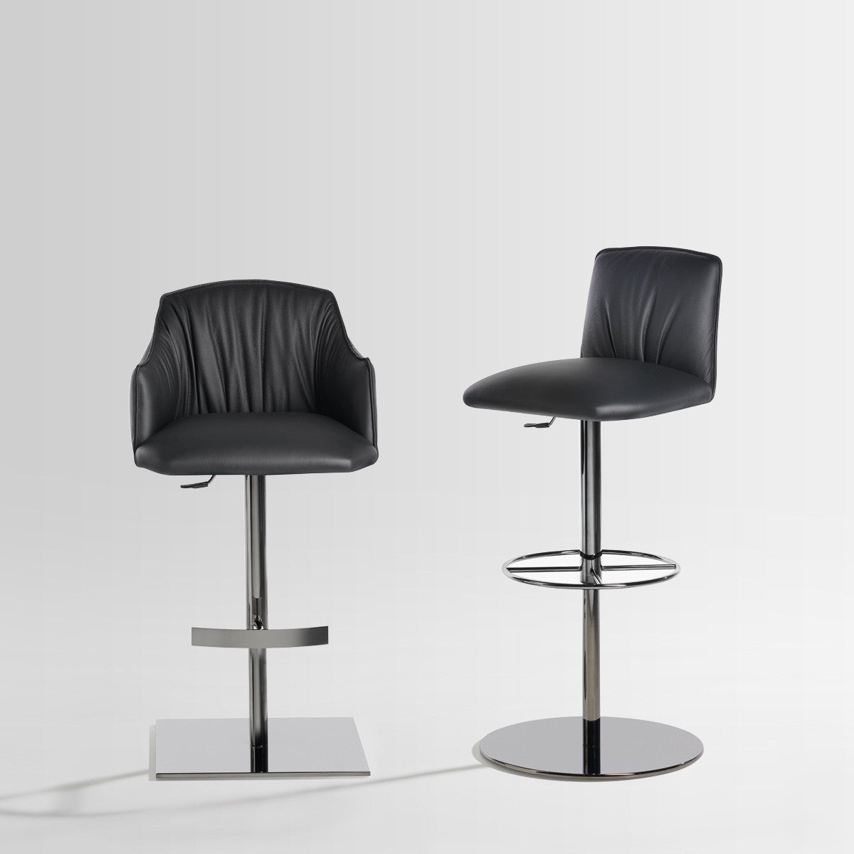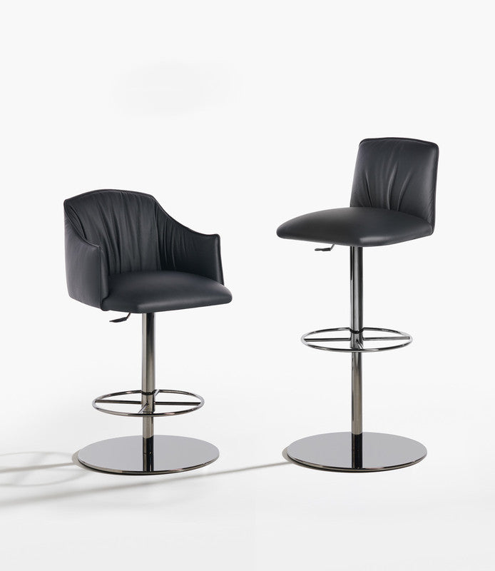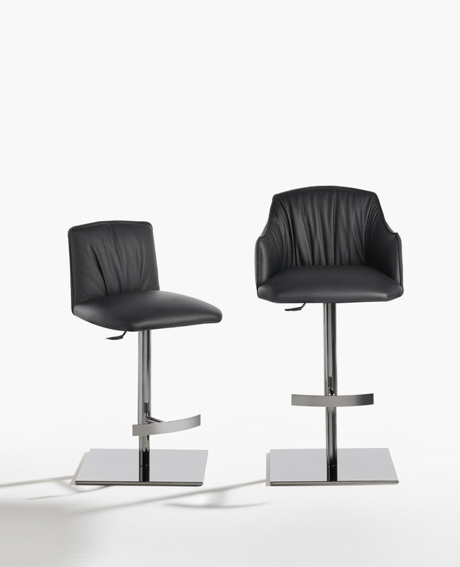 The Blossom stool, with central swivel metal leg and round or square base, is available in versions with or without armrests. Adjustable with gas lift system, is also equipped with a practical footrest.
