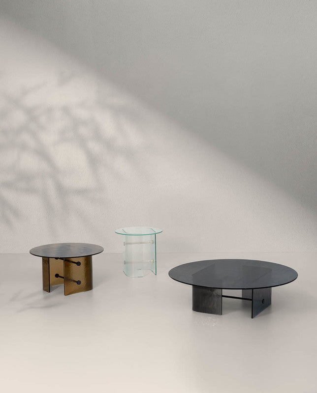 Double L Glaze is configured as a collection with a feminine and minimal aesthetic, light but characterized by precious workmanship and refined details. Double L Glaze coffee tables, designed by Chiara Andreatti, are enhanced with an outdoor version in tempered glass with painted stainless steel connection between the bases.