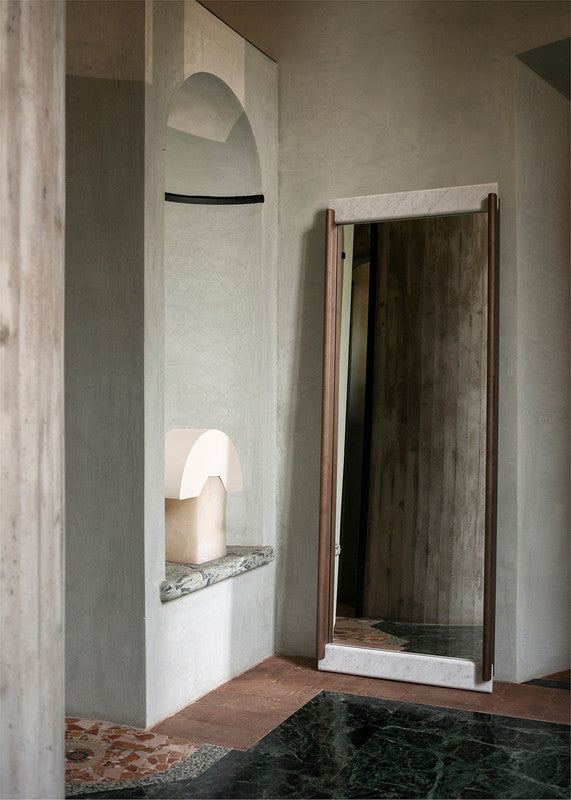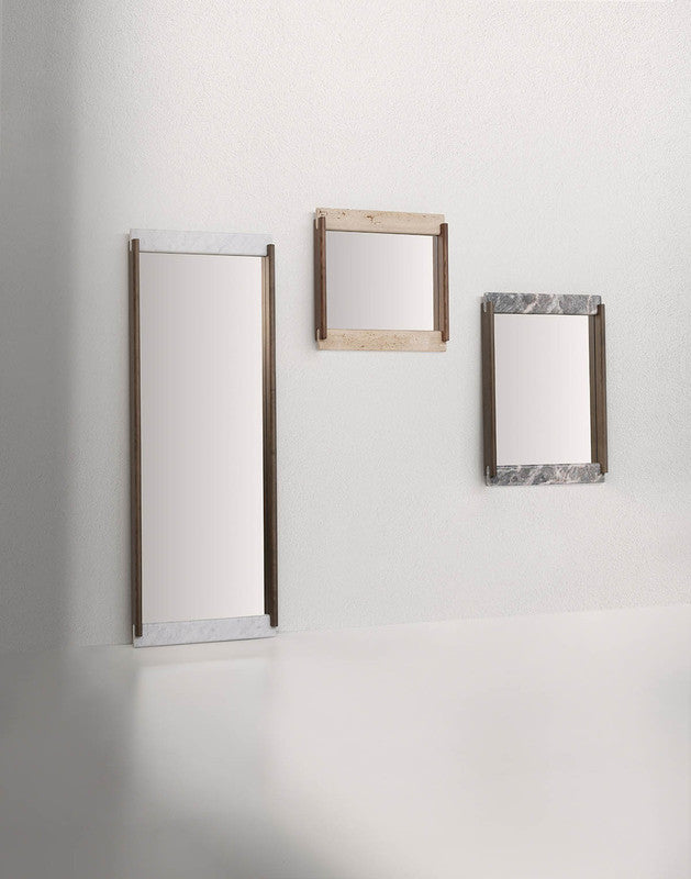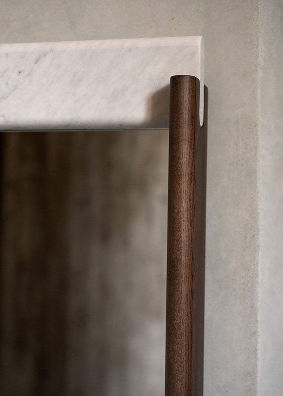 E Claire mirrors are distinguished by the encounter between ash wood and marble, joined by a refined interlocking element, inspired by the shape of the typical French dessert, the éclair. Available in three sizes, they combine elegance and materiality in an essential design.E Claire mirrors are distinguished by the encounter between ash wood and marble, joined by a refined interlocking element, inspired by the shape of the typical French dessert, the éclair. Available in three sizes, they combine elegance and materiality in an essential design.