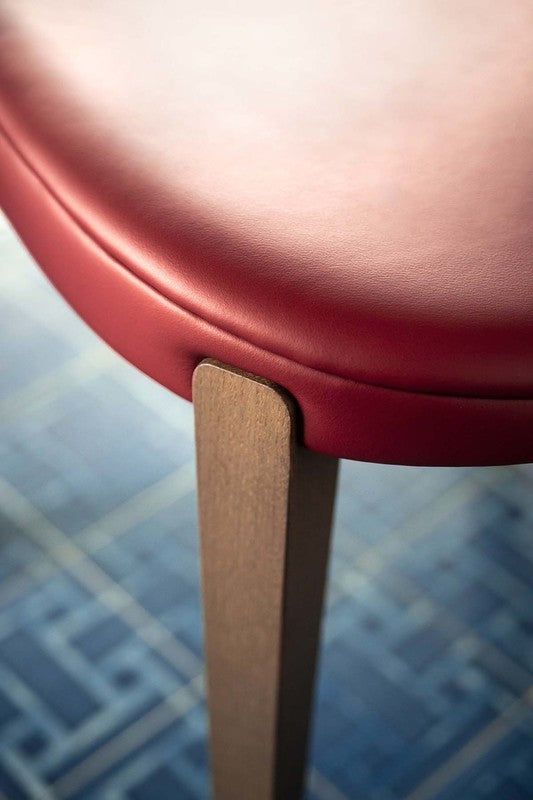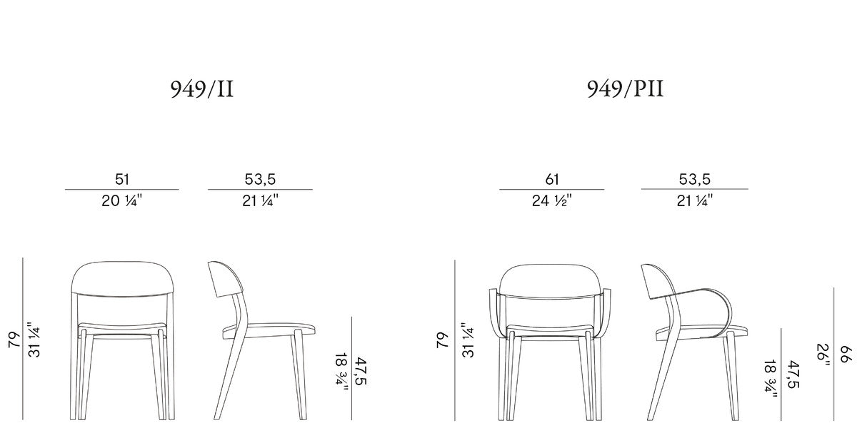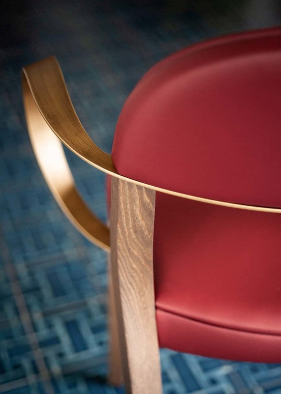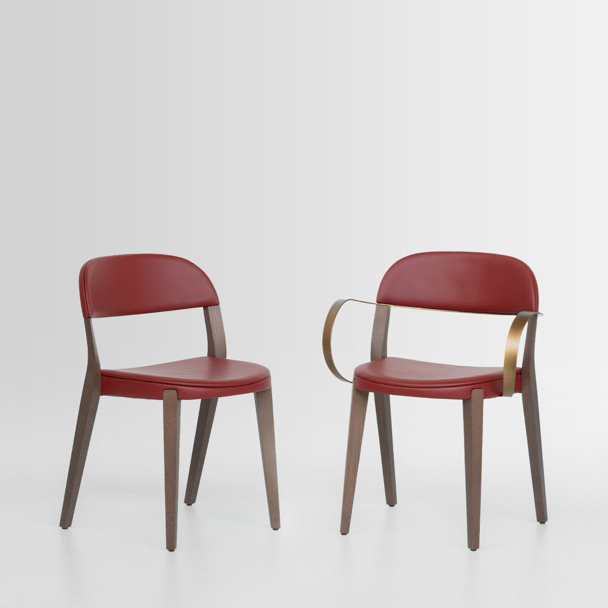 Minima is an all-wood seating collection that is enriched with a new version with an upholstered seat and backrest, adding comfort to the essential elegance of its lines.