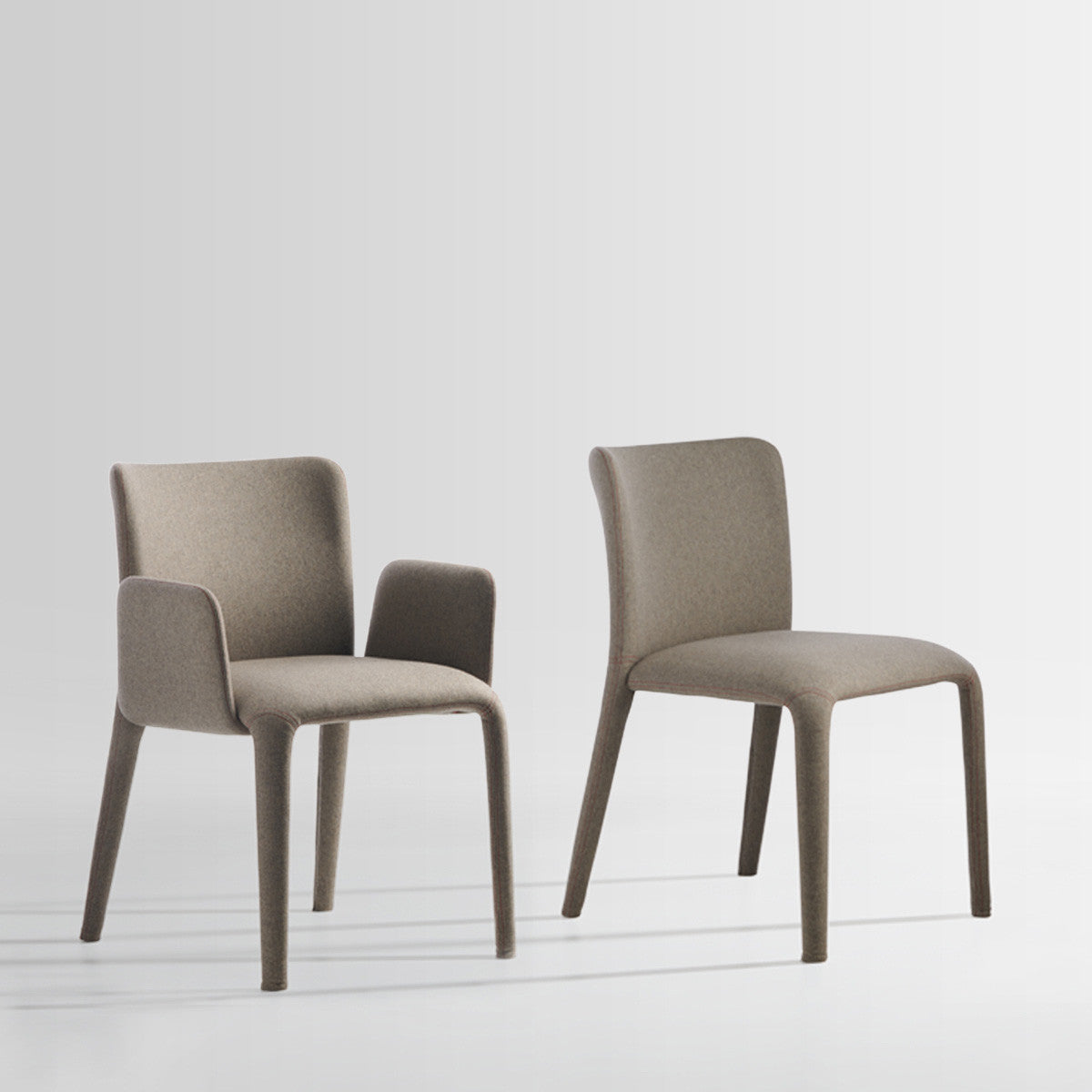 Fully covered in fabric or leather, Lars represents an interpretation of the single-material seating item, characterized by a tailored upholstery, which perfectly fits the entirely fire retardant polyurethane molded structure, hiding a metal core inside.