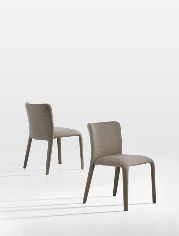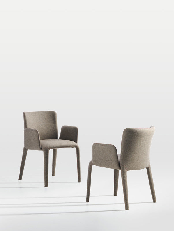 The Lars upholstered chair and small armchair stand out for the sinuous and special design of their legs, which appear to start from the seat and the back in one piece.