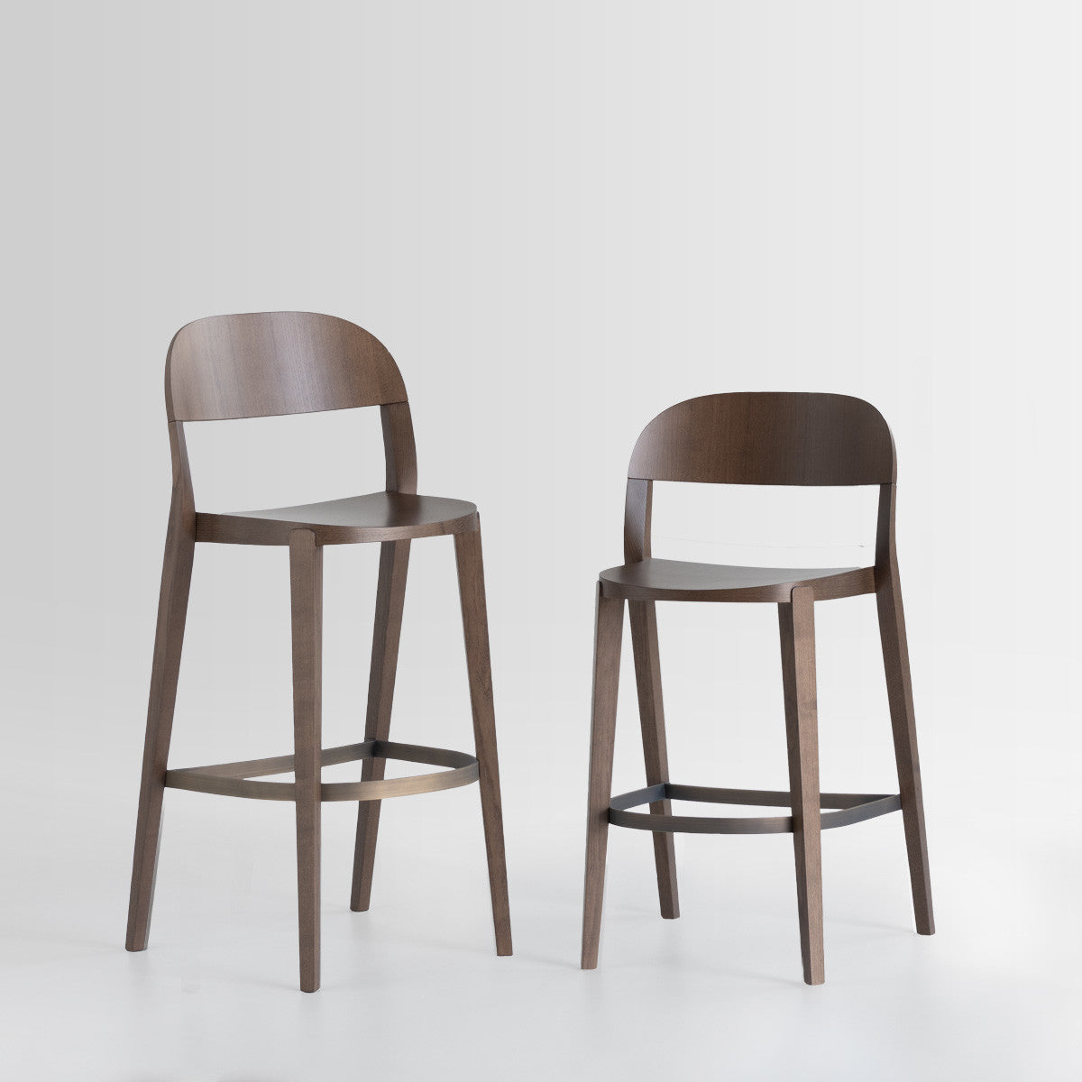 Minima is an all-wood seating collection that is enriched, on the occasion of the Salone del Mobile.Milano 2024, with a new  stool in two heights. Minima was born from the idea of creating a family of cozy and strong chairs with fluid and energetic lines. A project reassuring in its precise and punctual vision, distinguished by its weighted details and rigorous profile.