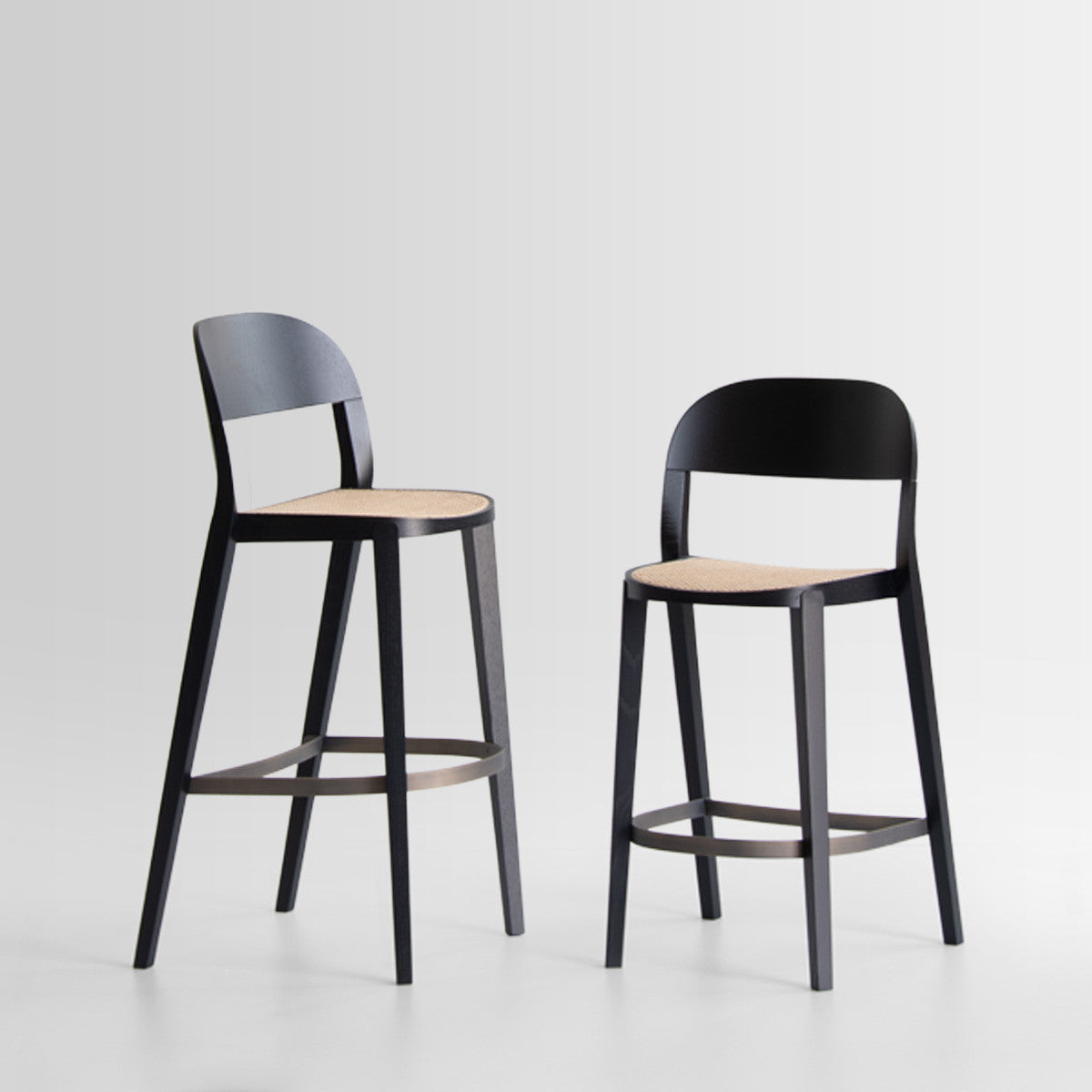 Minima is an all-wood seating collection that is enriched, on the occasion of the Salone del Mobile.Milano 2024, with a new stool in two heights. Minima was born from the idea of creating a family of cozy and strong chairs with fluid and energetic lines. A project reassuring in its precise and punctual vision, distinguished by its weighted details and rigorous profile.