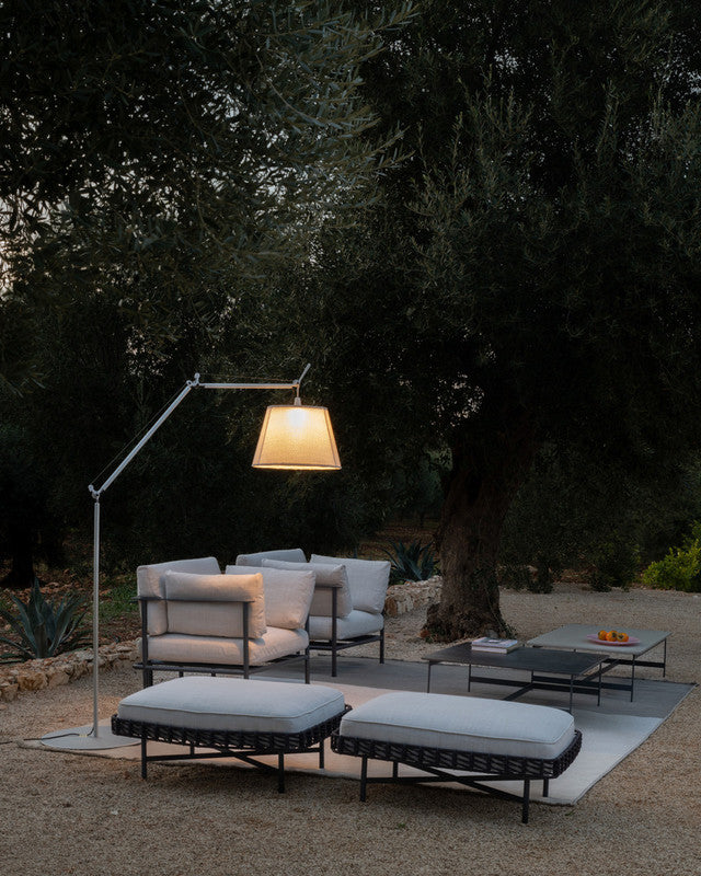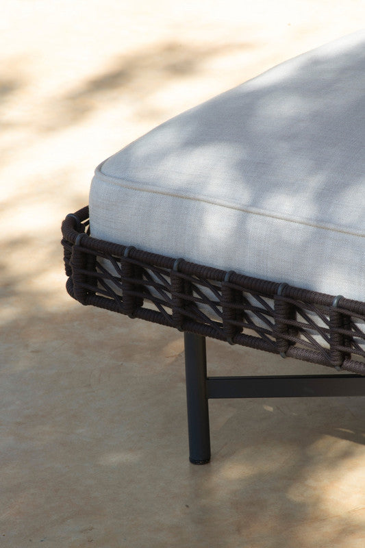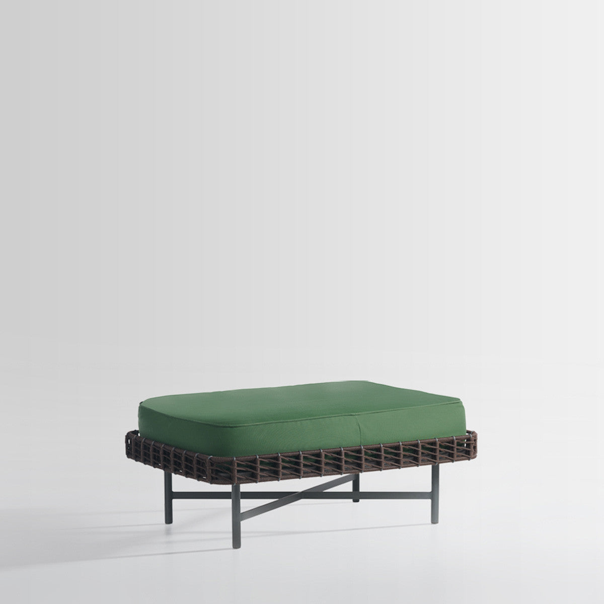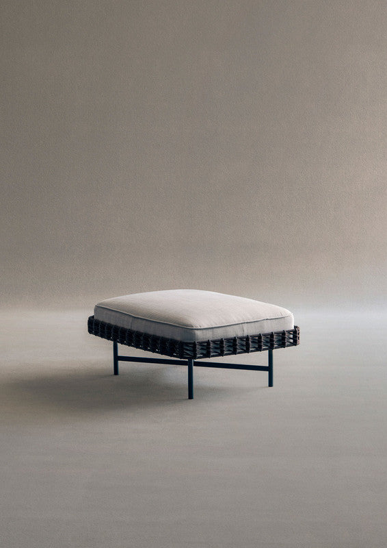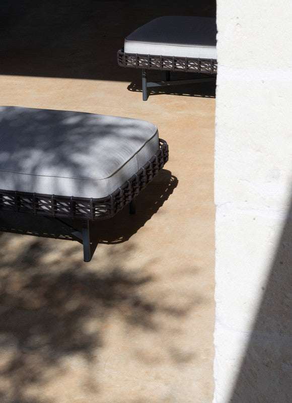 Ropu is a pouf characterized by a structure in embossed anthracite painted metal and seat cushion padded in fire retardant polyurethane foam, available in the outdoor fabrics as per collection.