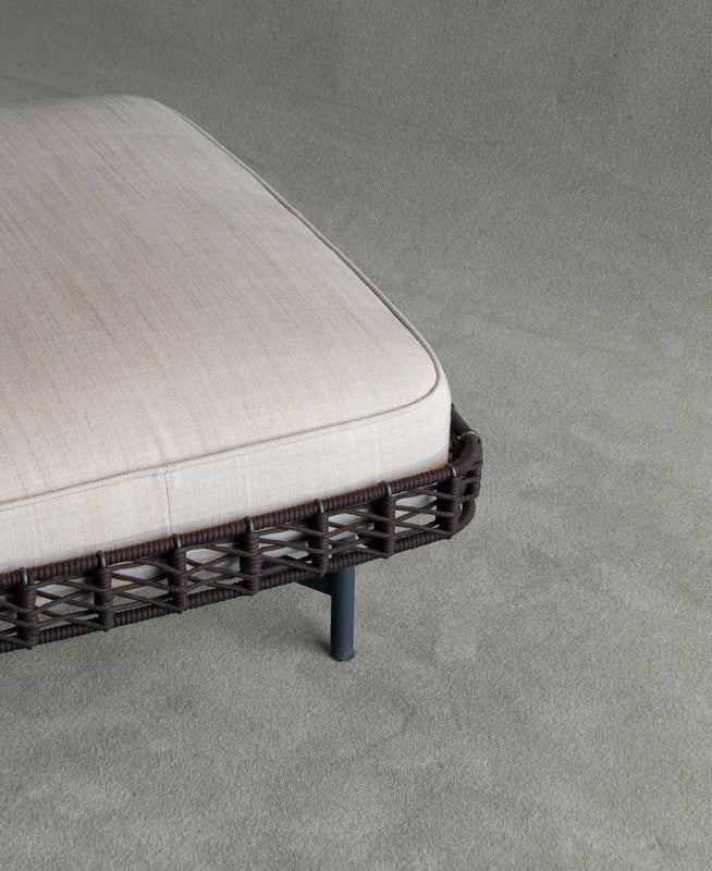 From exotic remembrances, Ropu stands out for the hand woven border in “Gassa” rope, which runs along the perimeter creating a frame for tops or soft cushions with mouse-tail profiles.
