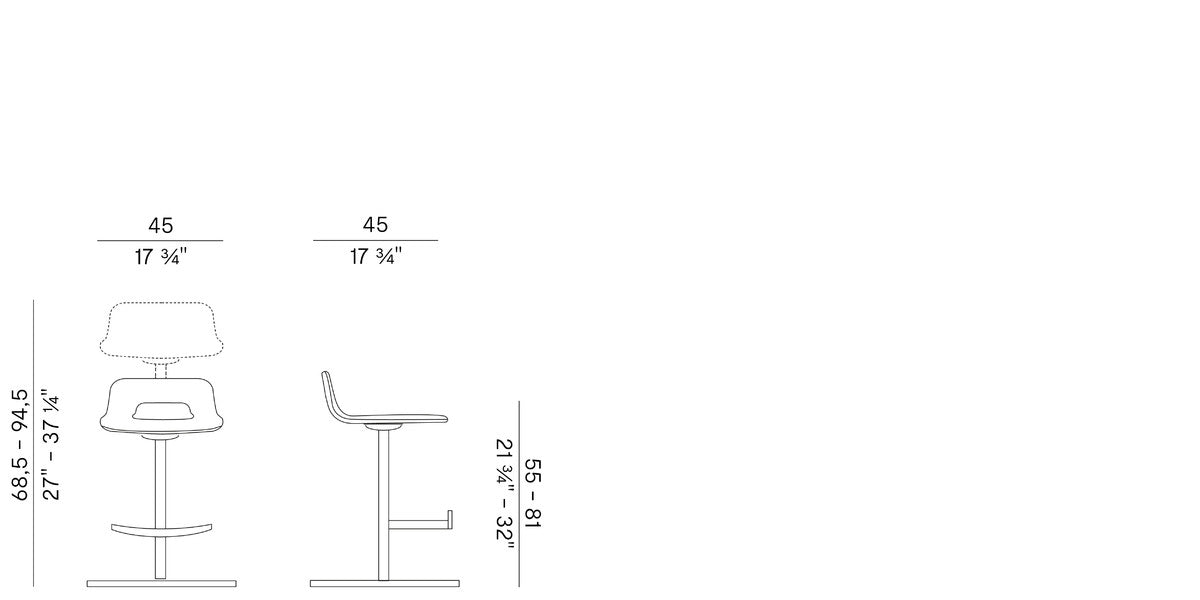 The stool from the Torso collection is available in a version with metal swivel central leg with gas lift system.