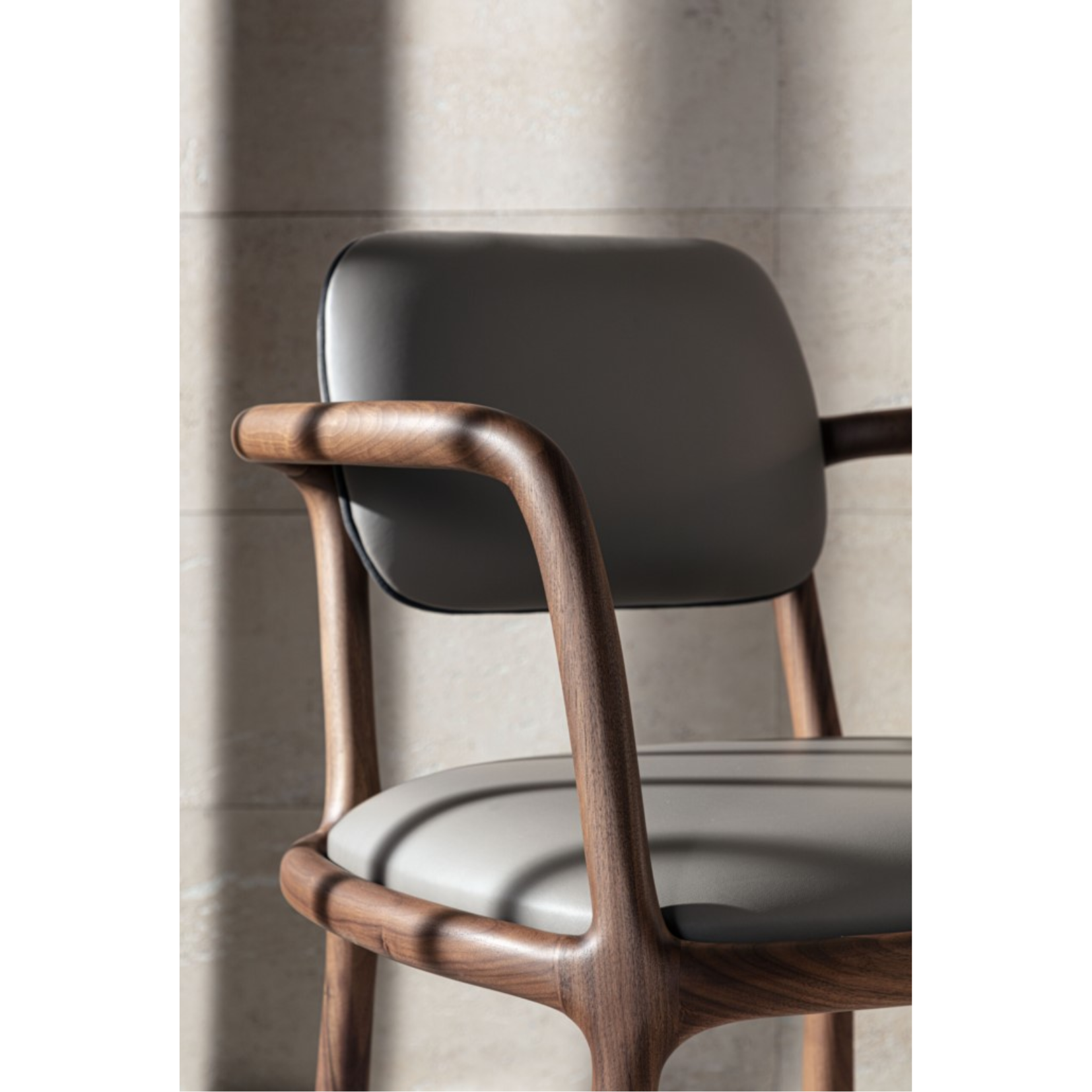 Sinuously elegant and refined, the Roma chair possesses a unique personality that is sure to become iconic. It features a blend of geometry and softness, contrast and harmony. Its solid wooden structure enhances the lightness of the seat and backrest upholstery. A timeless and particularly refined chair.