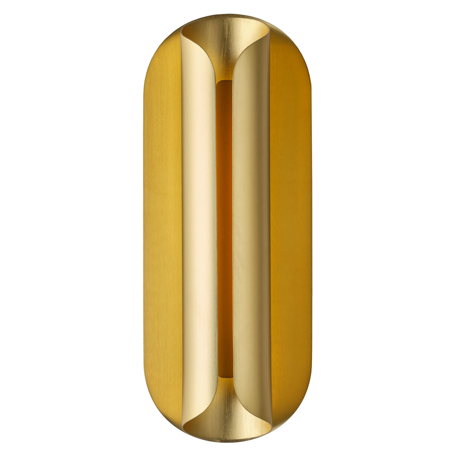 The Rosalie Wall Sconce features curved Aluminum plates that create an elongated wall fixture. Dimmable via Triac dimming.
