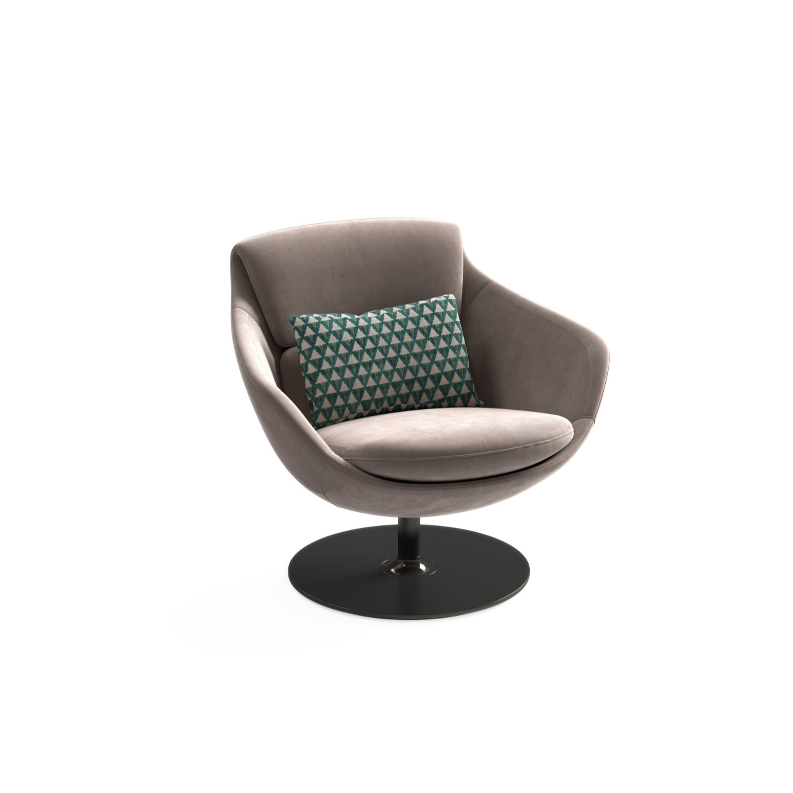 SAM is an armchair with armrests and metal base, upholstered with fabric or leather.
