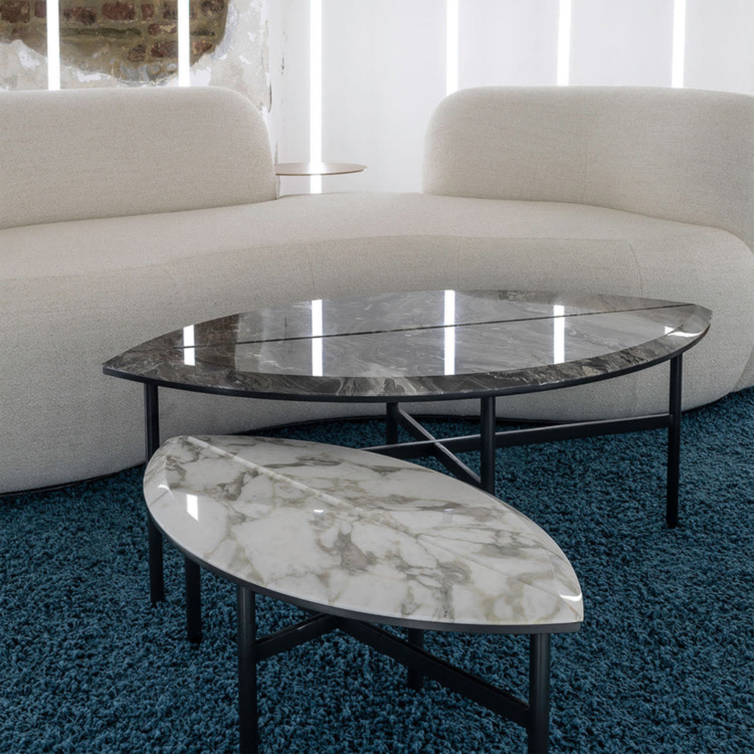 The Book 1 Coffee Table by Artefatto Design Studio takes inspiration from nature with a refined touch. Crafted with a Standard Arabescato Orobico marble top, the veins mimic those of a leaf, while the Jet Black lacquered metal base offers contrast and stability. It is available in different marbles and metal finishes, adds a striking yet organic aesthetic to any room.