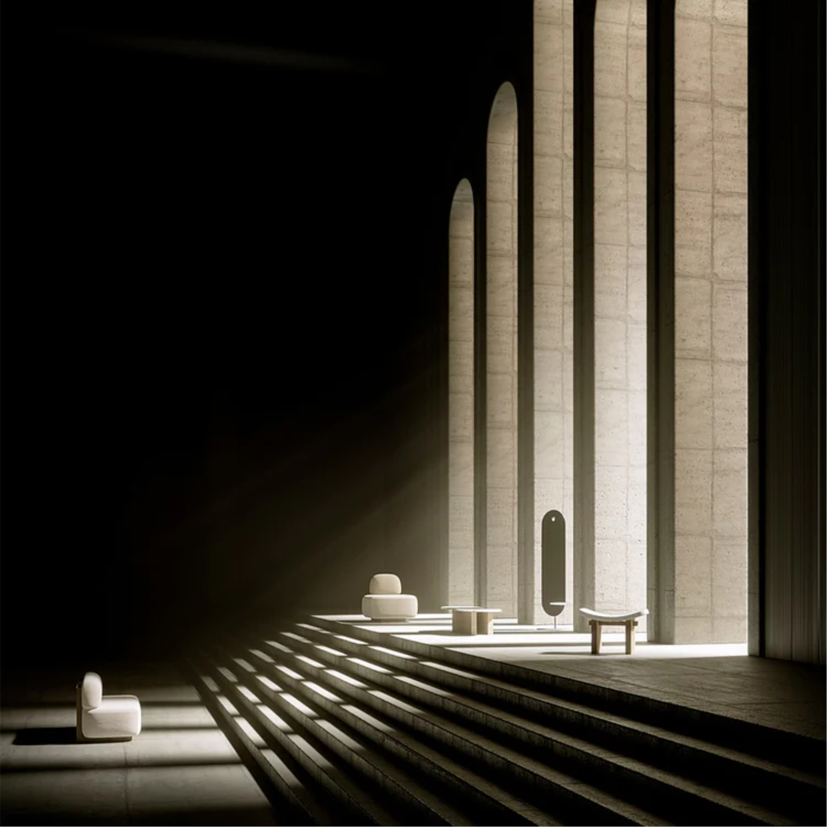 The Nara Stool by Artefatto Design Studio embodies minimalism with its elegant one-seater design, inspired by ancient Japanese architecture. Upholstered in Standard Cocò Desert Storm fabric, it features a sturdy White Oak wood base that complements its strong straight lines and soft curves. Its grand presence adds character to any corner of a room, making it a versatile seating.