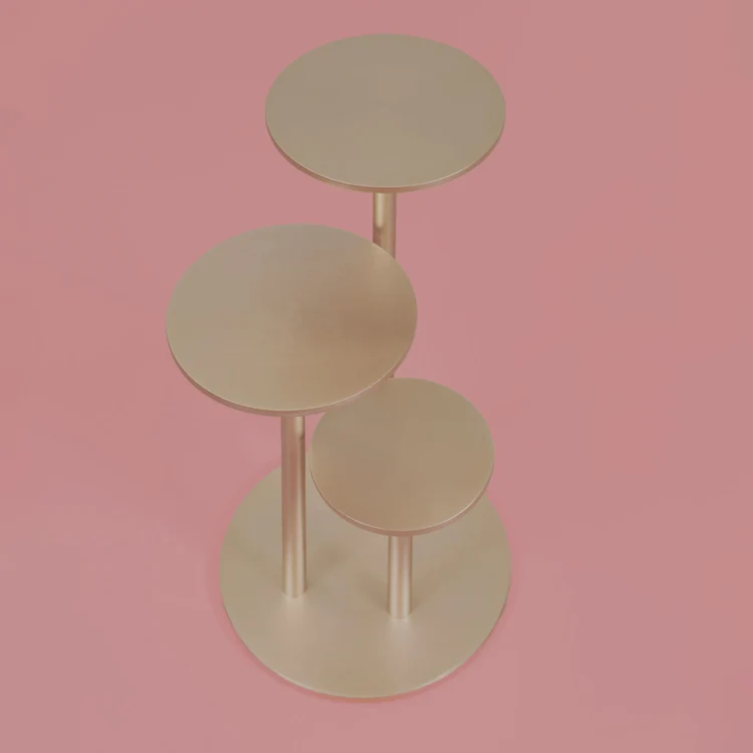 The Orion Side Table by Artefatto Design Studio is a striking blend of functionality and art. Inspired by Orion's Belt, it features three brushed metal discs at varying heights, creating a layered, sculptural effect. Crafted in a Satin Brass finish, the table offers a versatile elegance for any interior. Available in various metal finishes, Orion brings a celestial touch to modern decor.