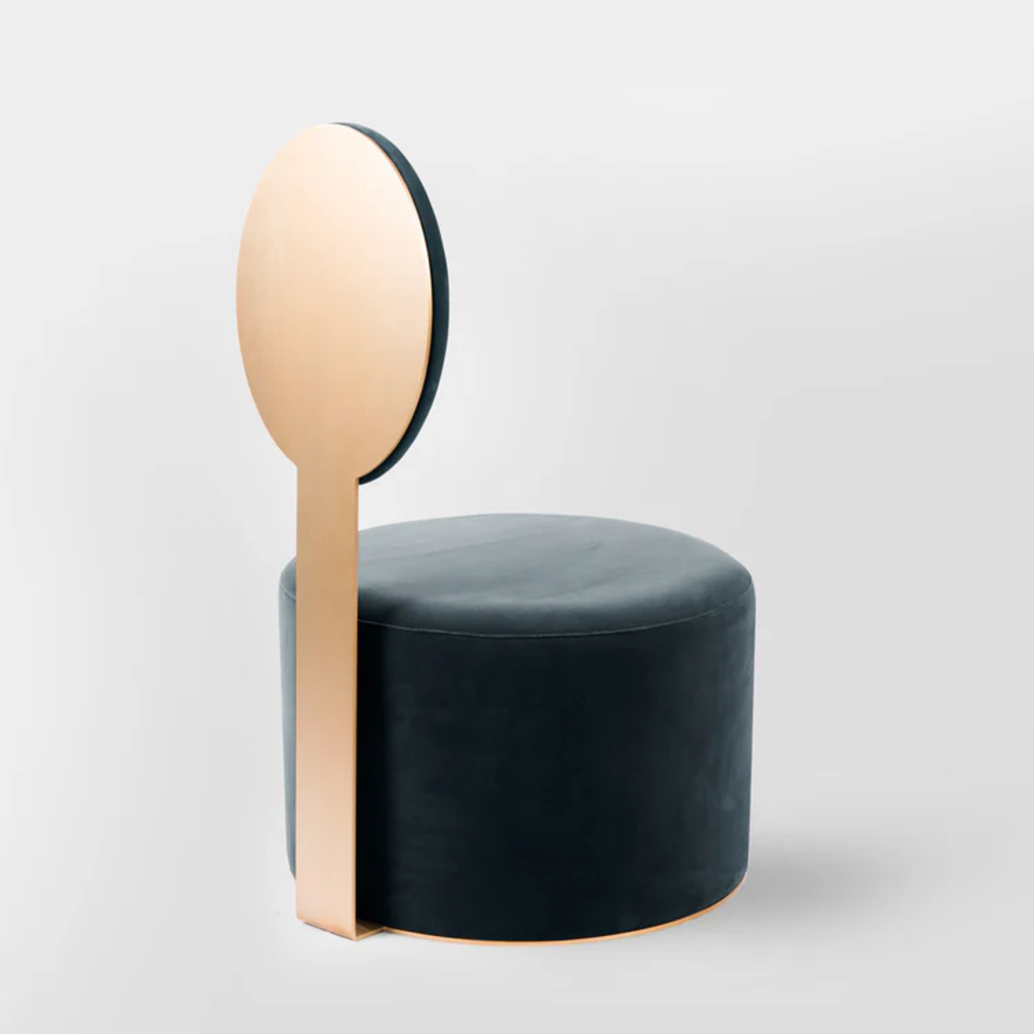 The Pop Lounge Chair in Standard Velvet Tiber with a Satin Brass metal structure by Artefatto Design Studio brings minimalist elegance to any space. The design features a seamless metal frame that supports the backrest and seat, creating a clean, floating profile. The backrest offers subtle flex for added comfort, while the velvet and brass finish add sophistication. Perfect for any interiors, with customizable options available.