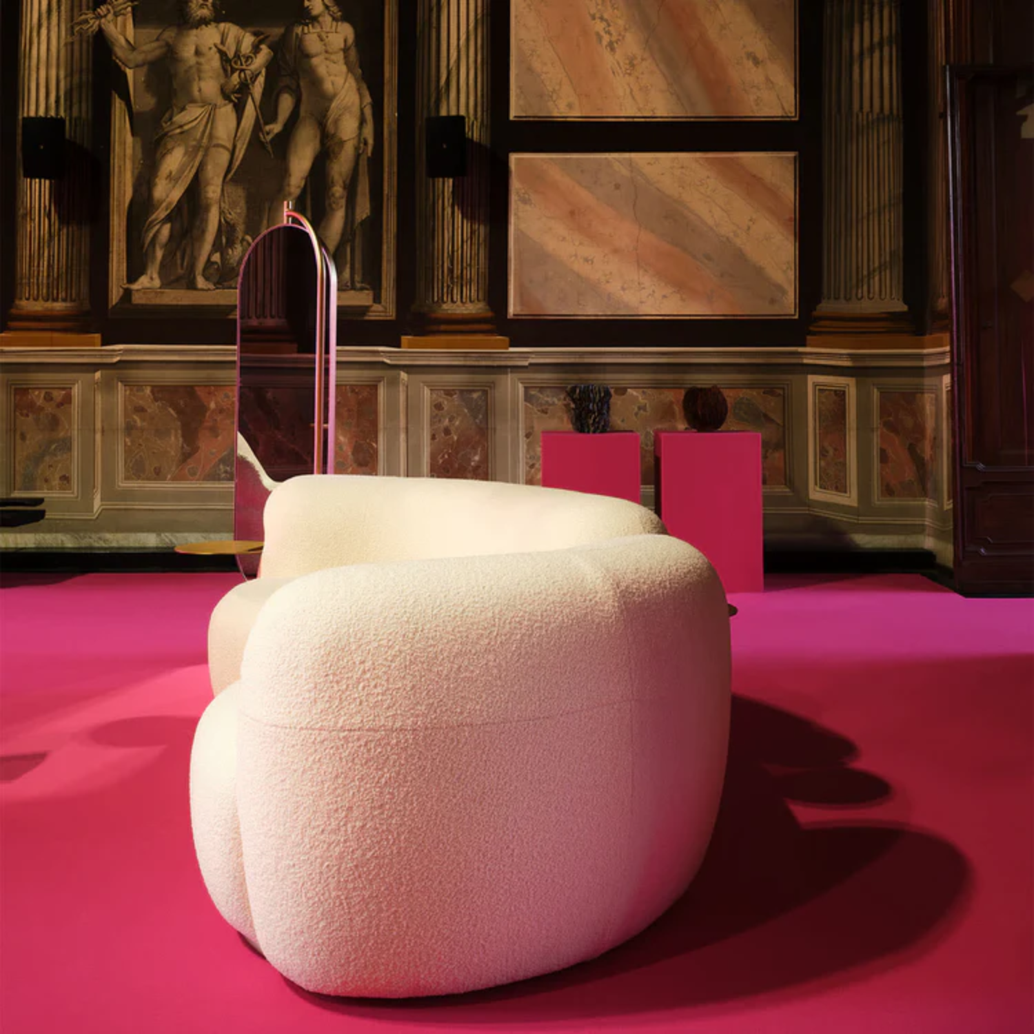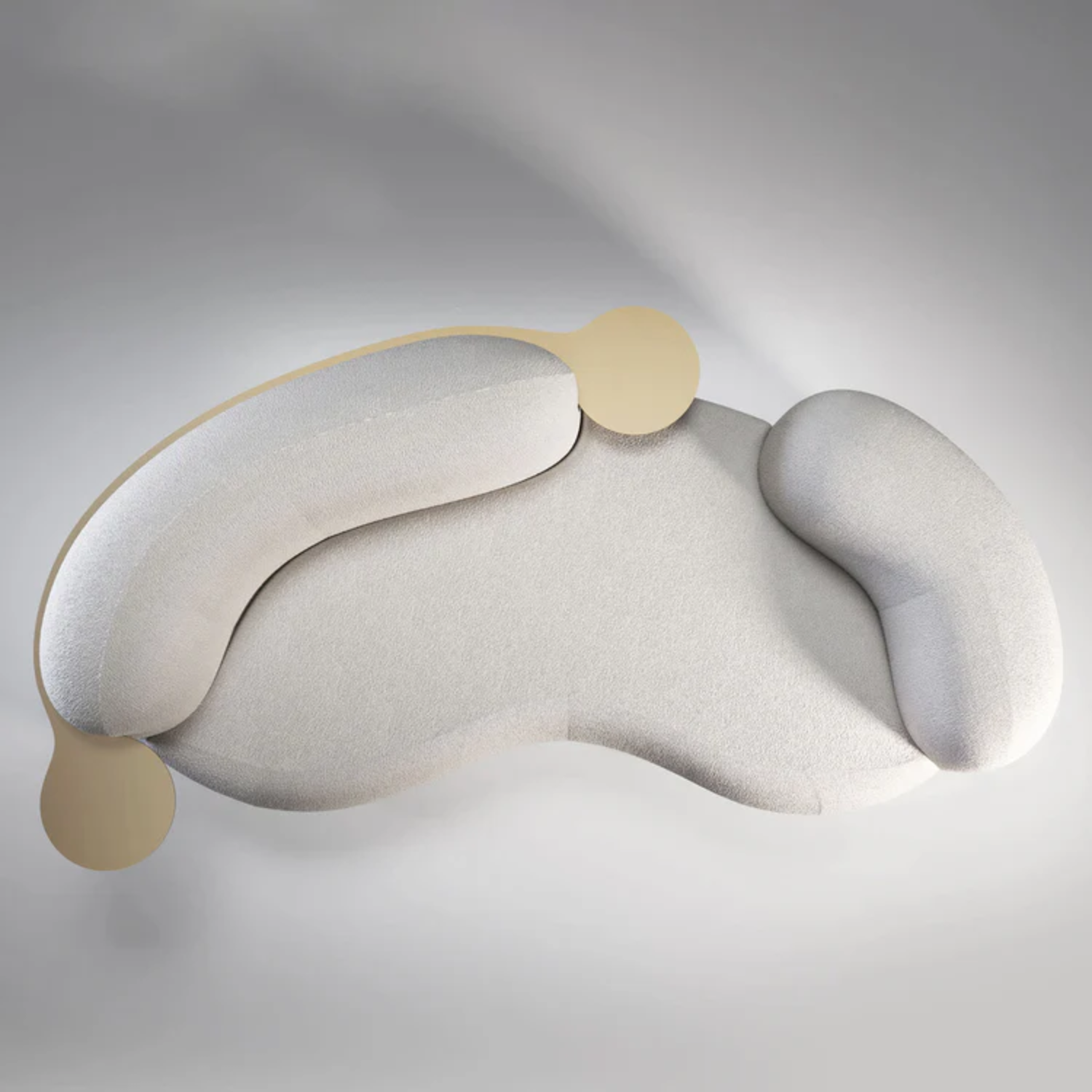 The Tateyama 250 Sofa by Artefatto Design Studio invites connection with its soft curves and open design. Upholstered in luxurious Bouclé Pearl Bush, it offers comfort and a unique carved backrest that connects the room. Complete with a Satin Brass metal arm, it adds sophistication to any space. Customizable with various fabrics, metal finishes, or wood stains, it’s both stylish and versatile.