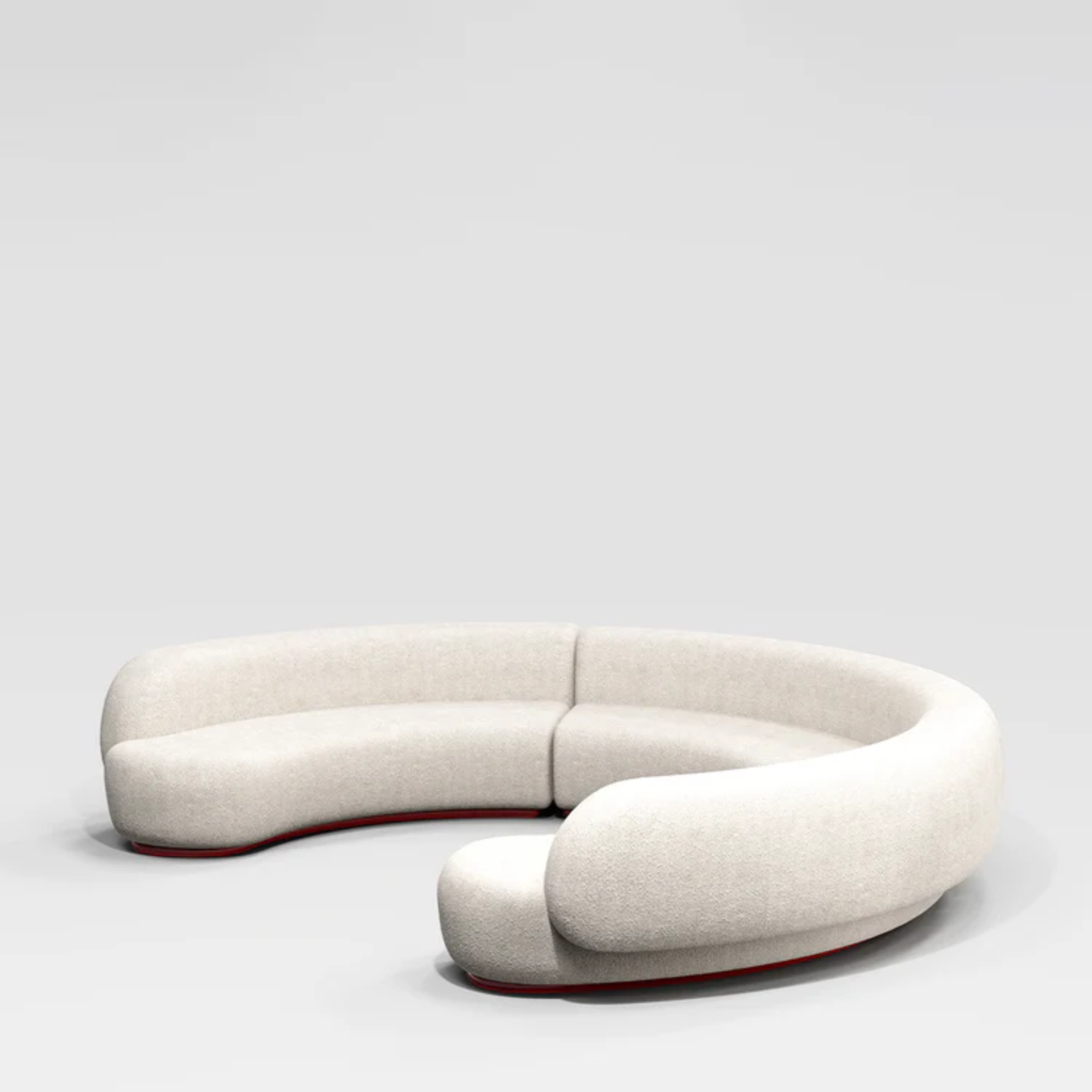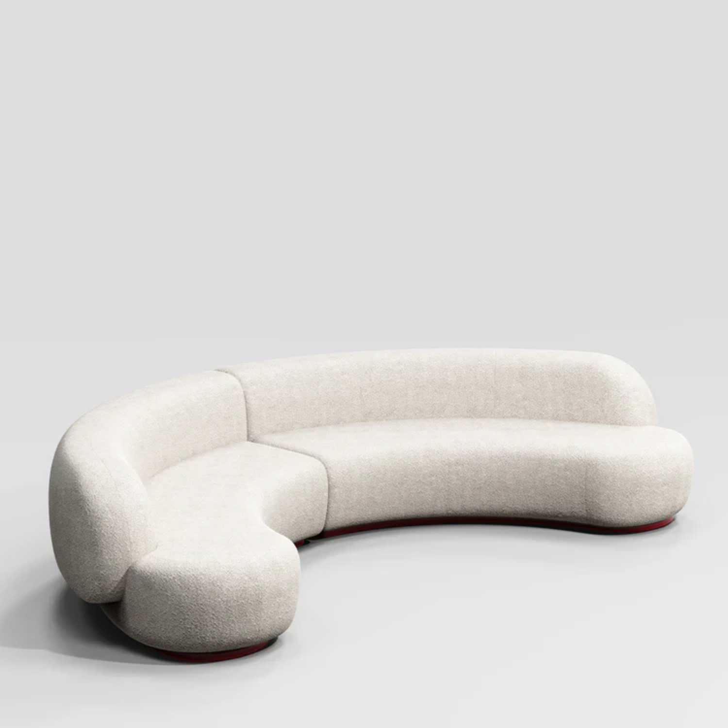 The Yamata sofa is a modular seating solution featuring softly curved forms from base to backrest. Designed for flexible configurations, it adapts to simple or intricate layouts to enhance comfort. Upholstered in bouclè pearl bush fabric, this version rests on a lacquered wood base finished in glossy bordeaux, merging texture with depth.The design highlights artisanal production techniques tailored to modern living spaces.