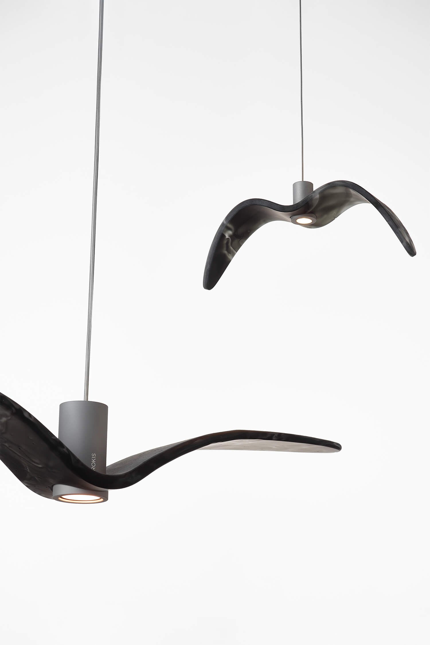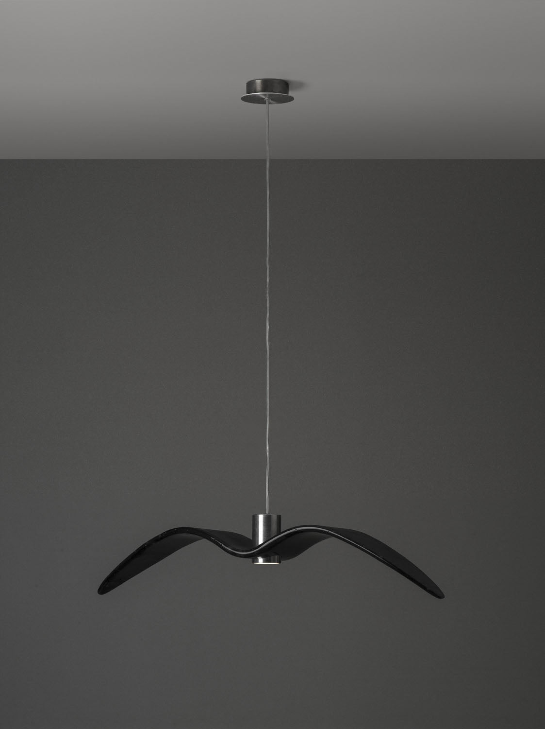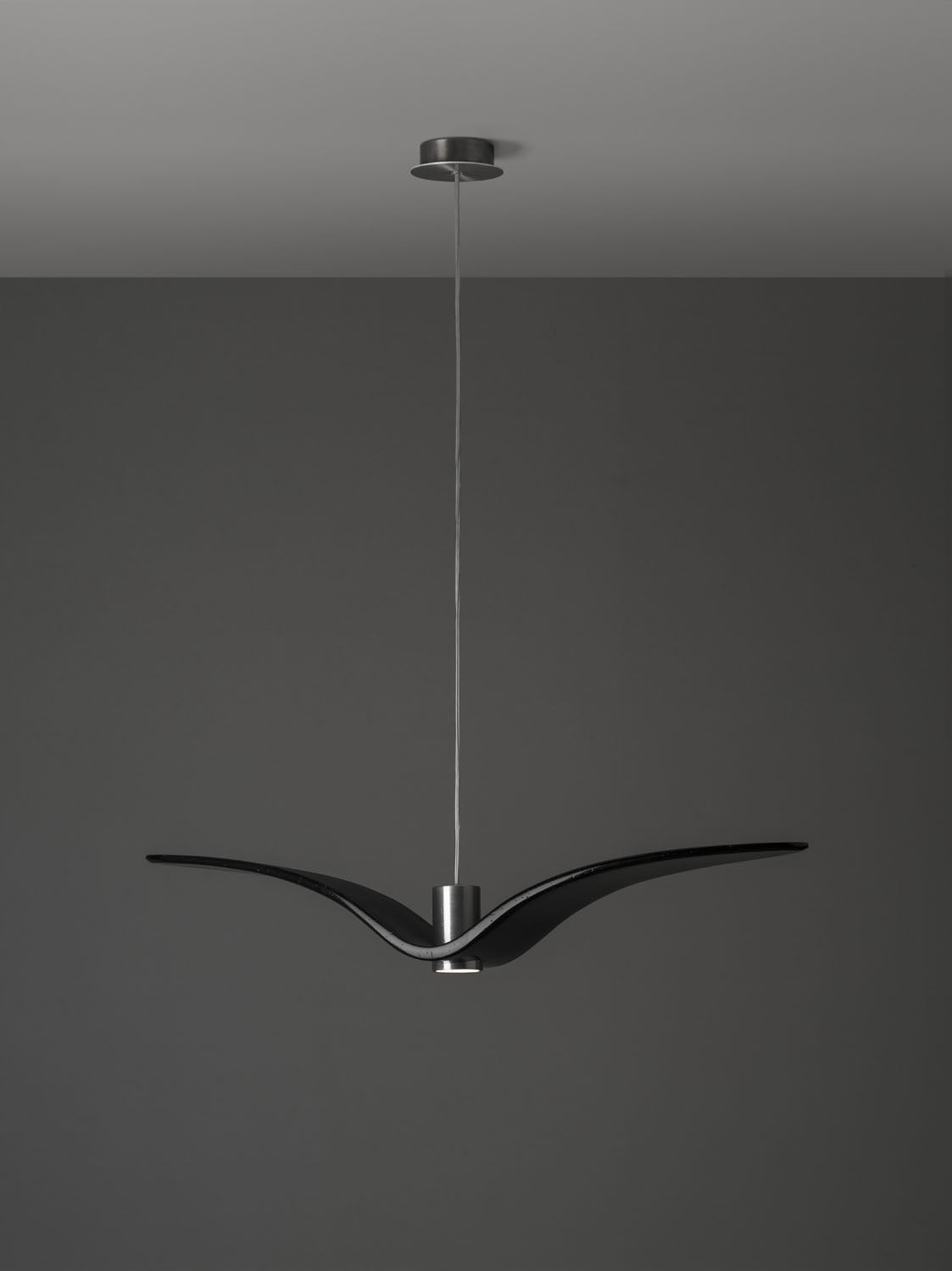 Inspired by the abandon and freedom of bird flight, the innovative Night Birds suspension lights impart poetic enchantment and unparalleled dynamism to any interior. Night Birds differ from the other collections in the unique technology applied in production, which involves melting glass into a mould and then bending it. The process makes it possible to instil delicate nuances in the shape of the wings and achieve a coloration of the glass that is different and wholly unique each time.