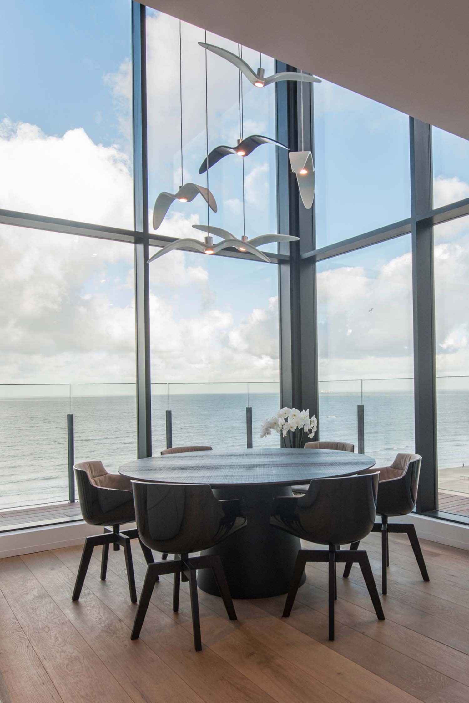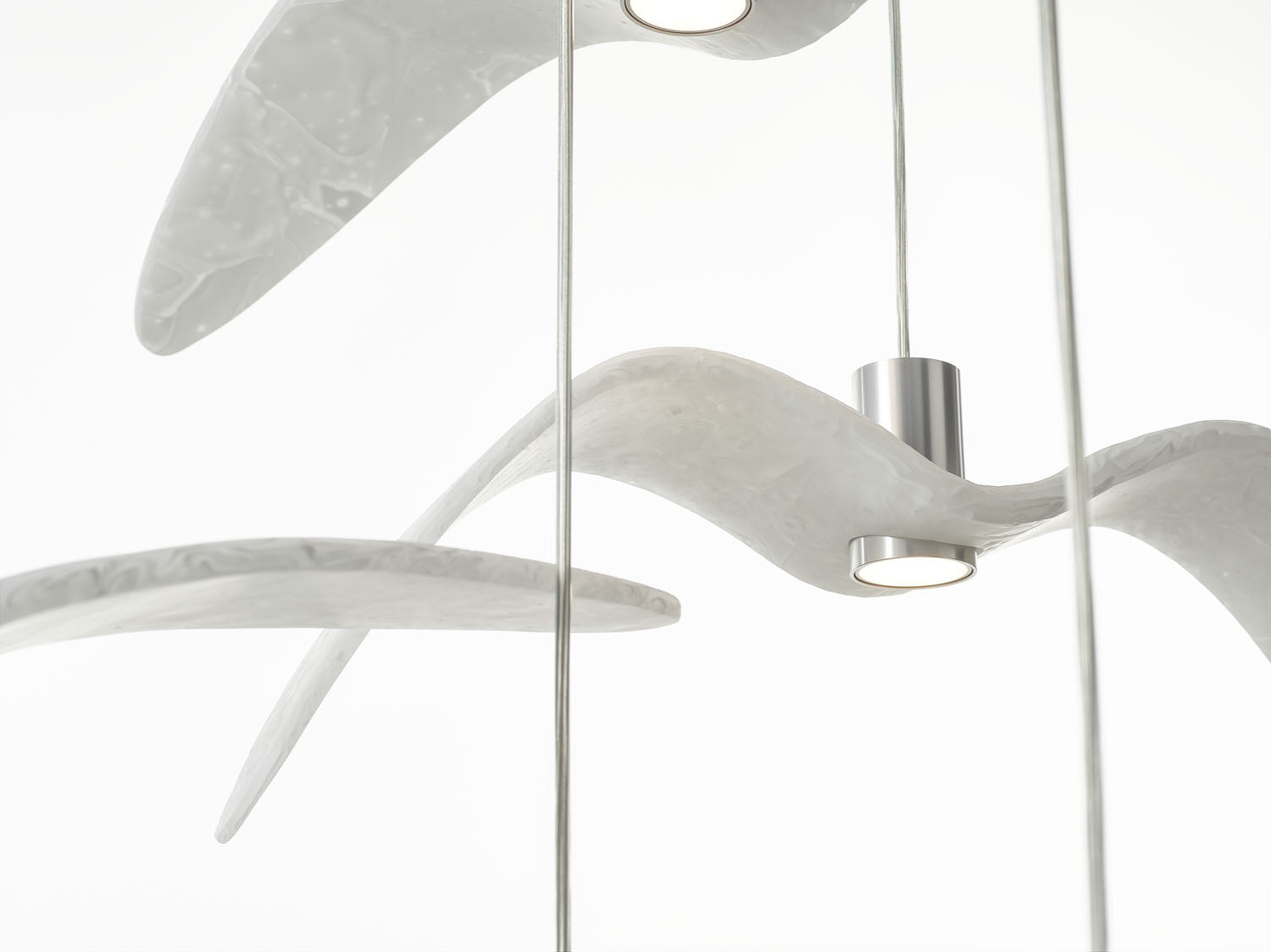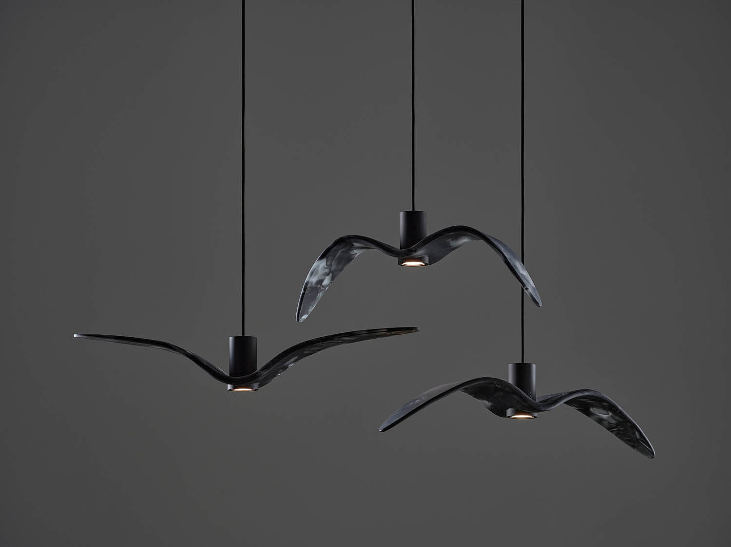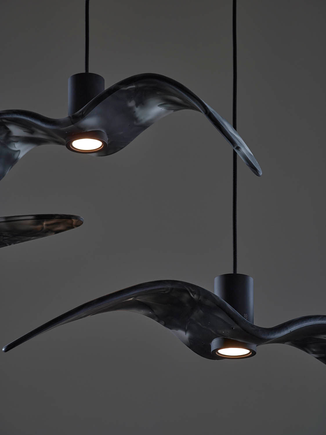 Inspired by the abandon and freedom of bird flight, the innovative Night Birds suspension lights impart poetic enchantment and unparalleled dynamism to any interior. Night Birds differ from the other collections in the unique technology applied in production, which involves melting glass into a mould and then bending it. The process makes it possible to instil delicate nuances in the shape of the wings and achieve a coloration of the glass that is different and wholly unique each time.