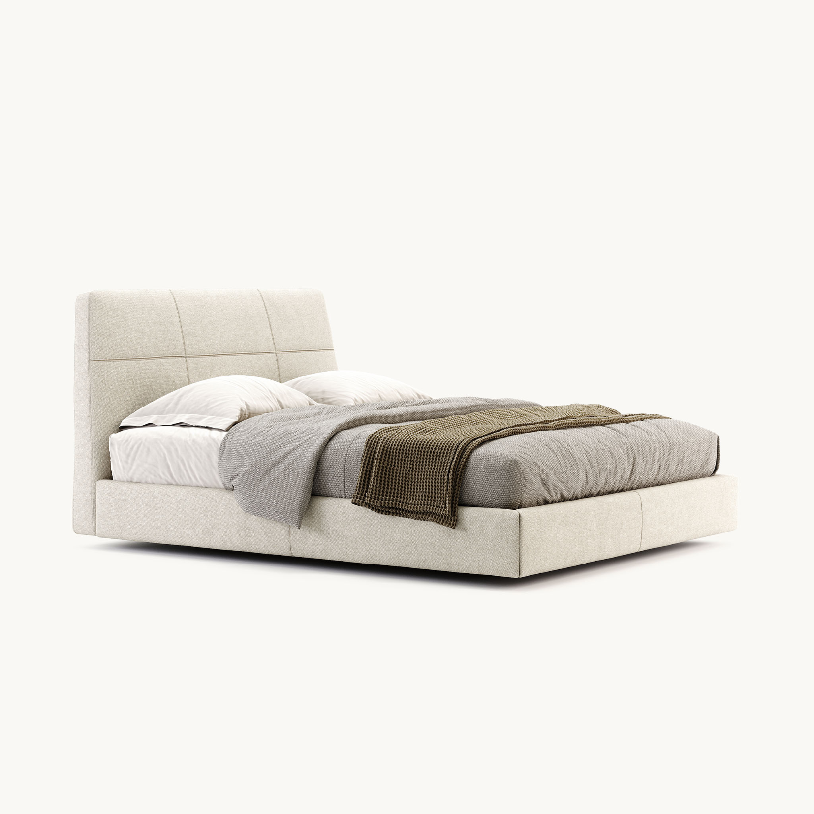 The unique Shelby bed is a sophisticated bed inspired by the geometric lines, angles, and shapes that we all love. The upholstered frame and its clean-cut lines are complemented by the upholstered structure and its lines, ensuring a comfortable and refined piece.