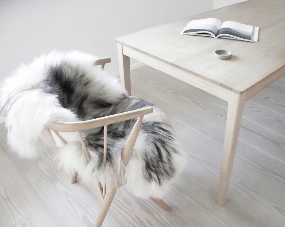 Long-haired sheepskin from Iceland are an unrivalled natural material that keeps you warm during the winter and cool during the summer. Exclusive and of the highest quality this skin comes in different white and black nuances. Enjoy the added comfort and style and use the skin in the Sibast No 8 dining chair or the Sibast No 7 Lounge.