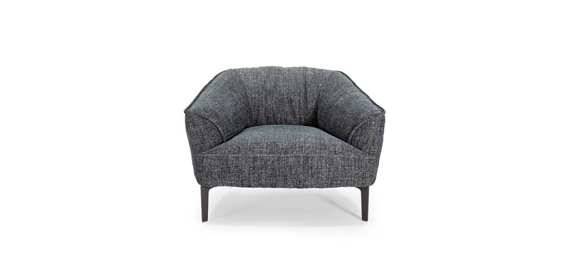Sigmund armchair is a soft cloud, a comfortable and welcoming nest. Leather or fabric upholstery, outlined by a typically handcrafted trim. A wood and metal structure for maximum versatility suitable for all environments.