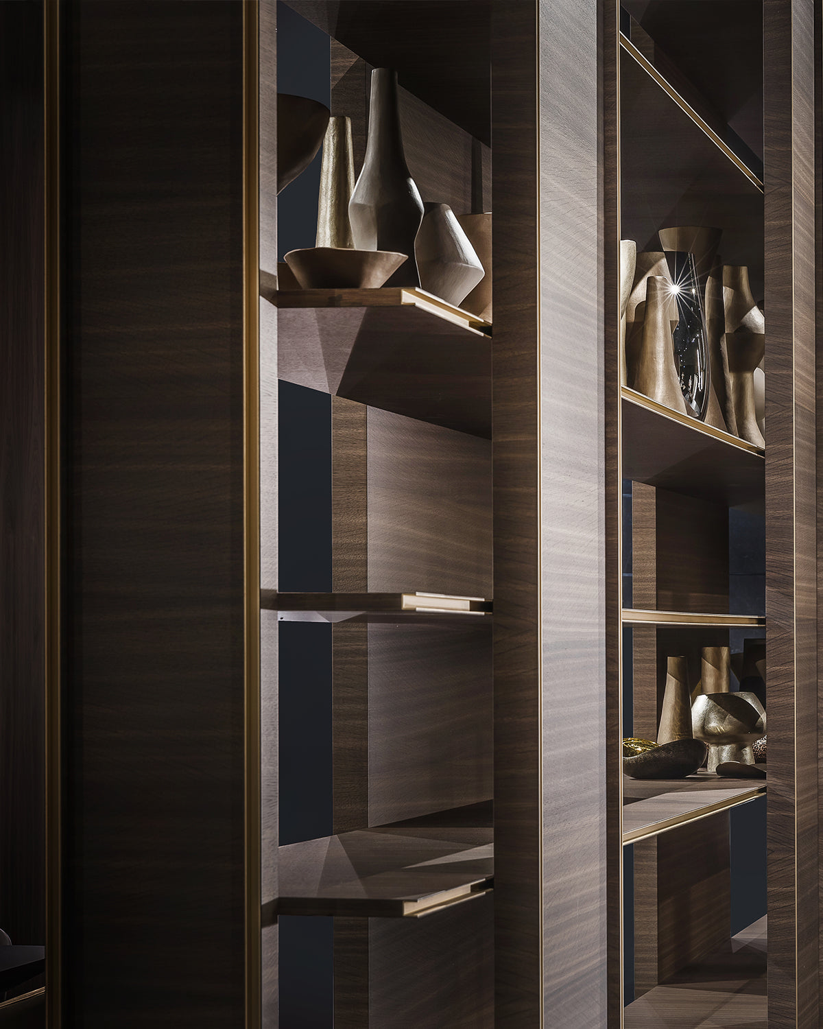 The vertical elements have been thought in order to enhance the possibility of double-side use and they have been conformed to welcome different finishes. A great versatility, that allows the object to be placed in different contexts.