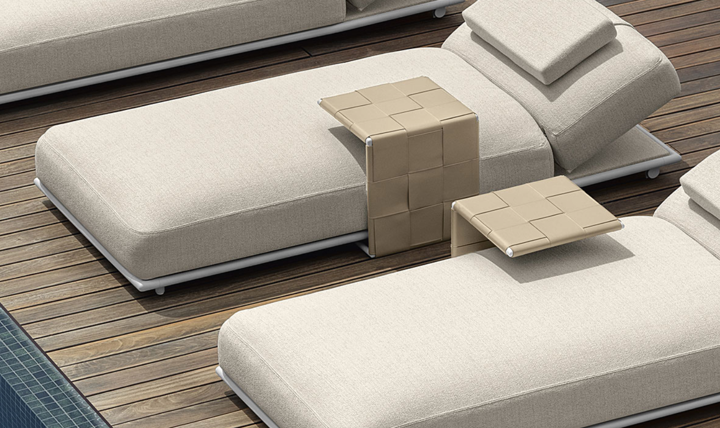The Tressè side table is the ideal table for relaxing moments. It completes the furniture with elegance, thanks to the sophisticated interweaving of eco-leather bands, handmade, and maximizes comfort and functionality with a modular design, which allows great freedom of adaptation.