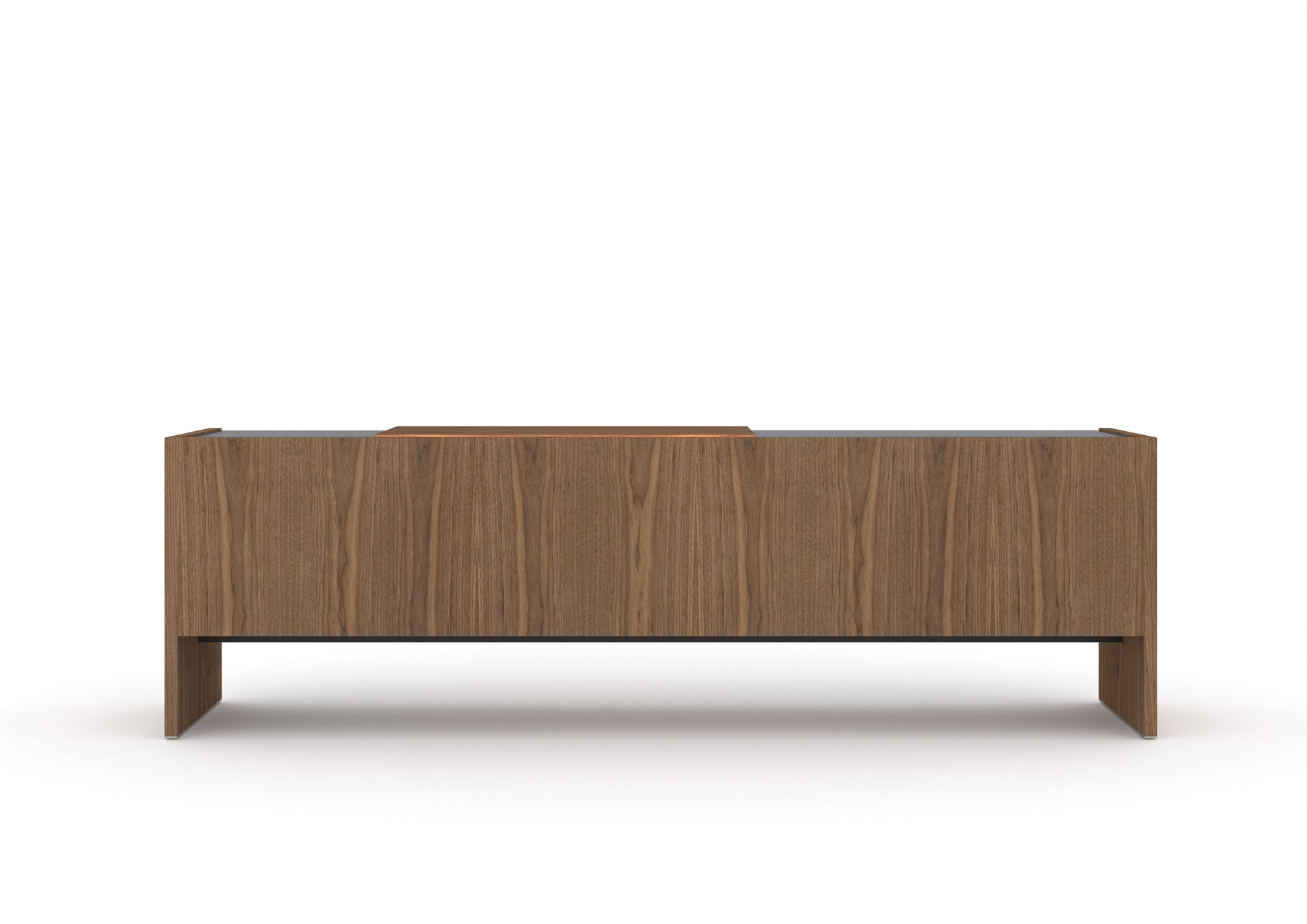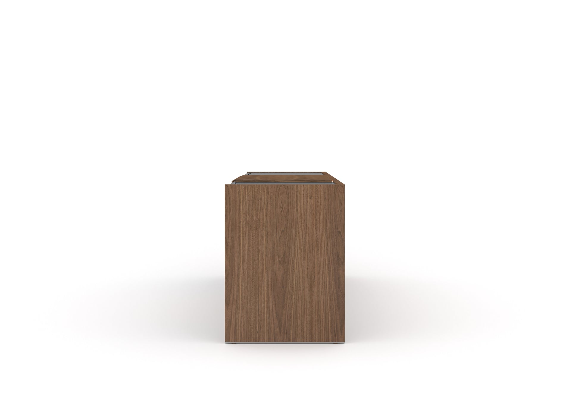 Lucca is a rectilinear sideboard designed to live in the centre of the room or against the wall. It has a glass shelf and light inside, as well as an LED strip running along its back surface. At the bottom of the legs, there is a chromed metal detail. "The desire to deconstruct the volumes is achieved through the contrast of finishes, different thicknesses and directions of the veneers. The glossy modules seem to be embraced and supported by the strong and solid wood perimeter. The hinged door characterises the front of the unit, while its upper part becomes a stage for displaying objects," explains Dordoni.