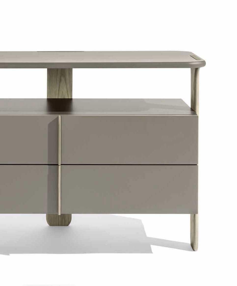Trio D S is a beautiful mix between ash wood and marble is perfect for a contemporay and modern environment. Complementary with Trio Nightstand, this wonderful chest of drawers is an iconic piece for the bedroom. The structure is equipped with two drawers which has a soft locking system. The wooden details of the handles and on the marble top give an additional touch of design.