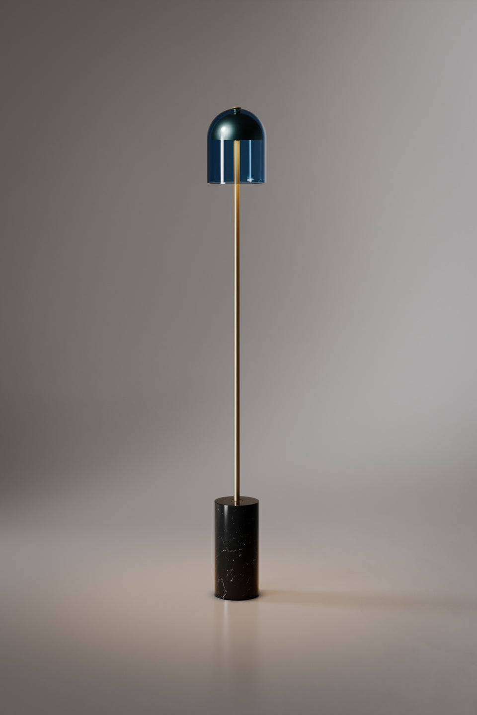 Doma Floor generates contrasts of light and matter from between its parts. Volumes and noble materials interpenetrate in a play of primary forms, exalting each other: the Murano glass bell shade dialogues with its agile stem and solid base. Suitable for indoor and outdoor spaces, Doma Floor’s indirect light can be adjusted thanks to its touch dimmer. The Doma collection is also available in suspension, table and wall versions, in different finishes.