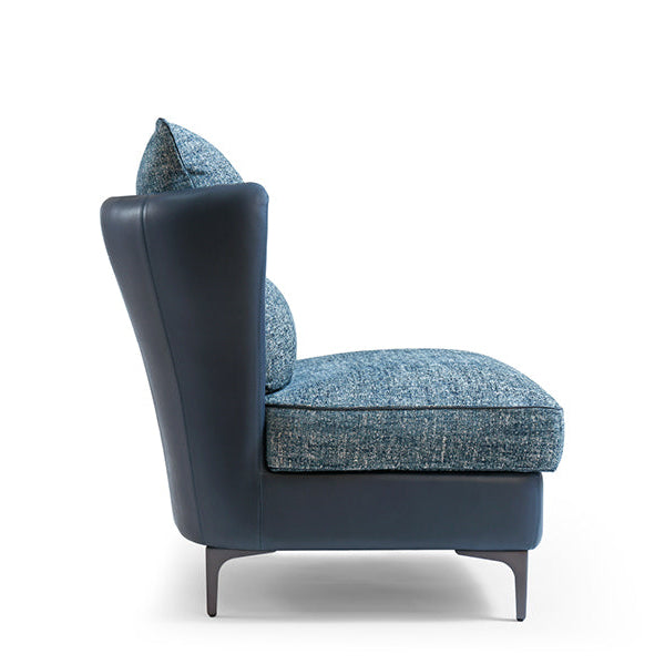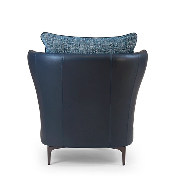 A perfect armchair for all environments. It gives a touch of class in all places where it is the protagonist. The rigidity of the body contrasts with the soft and generous cushions, embellished with embroidered edges.