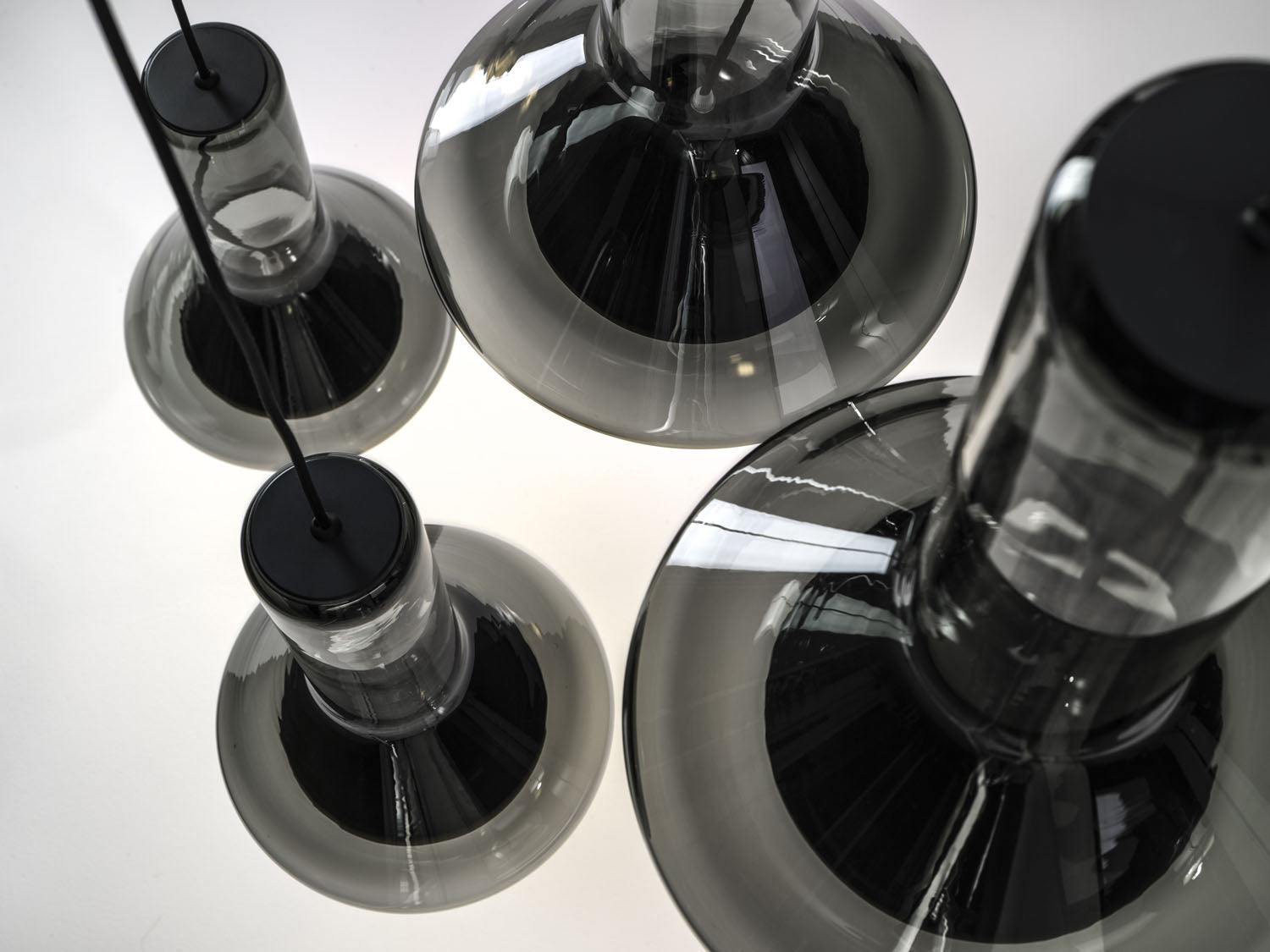The Whistle Multi Light Pendant is inspired by the blowpipe, known as a glass-maker's whistle. The shape of the pendant and the cable winding its way up through the body of the light define its simple form. Fitted with a special integrated connector developed by Brokis to facilitate installation and cleaning. Available with a variety of glass and finish options. NOTE: Overall Height must be specified upon ordering. Cords are not field-adjustable. Please contact our sales team.